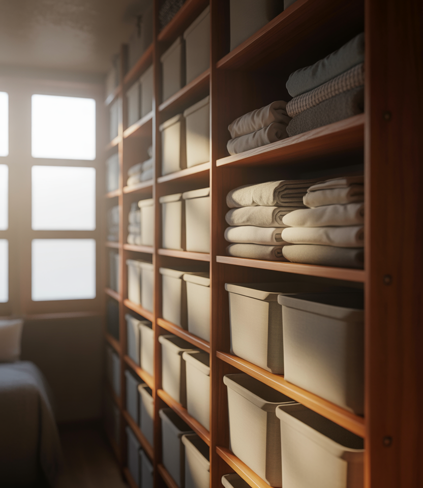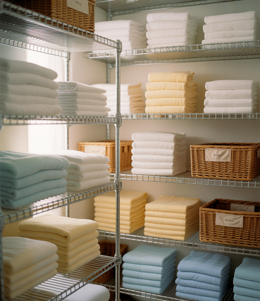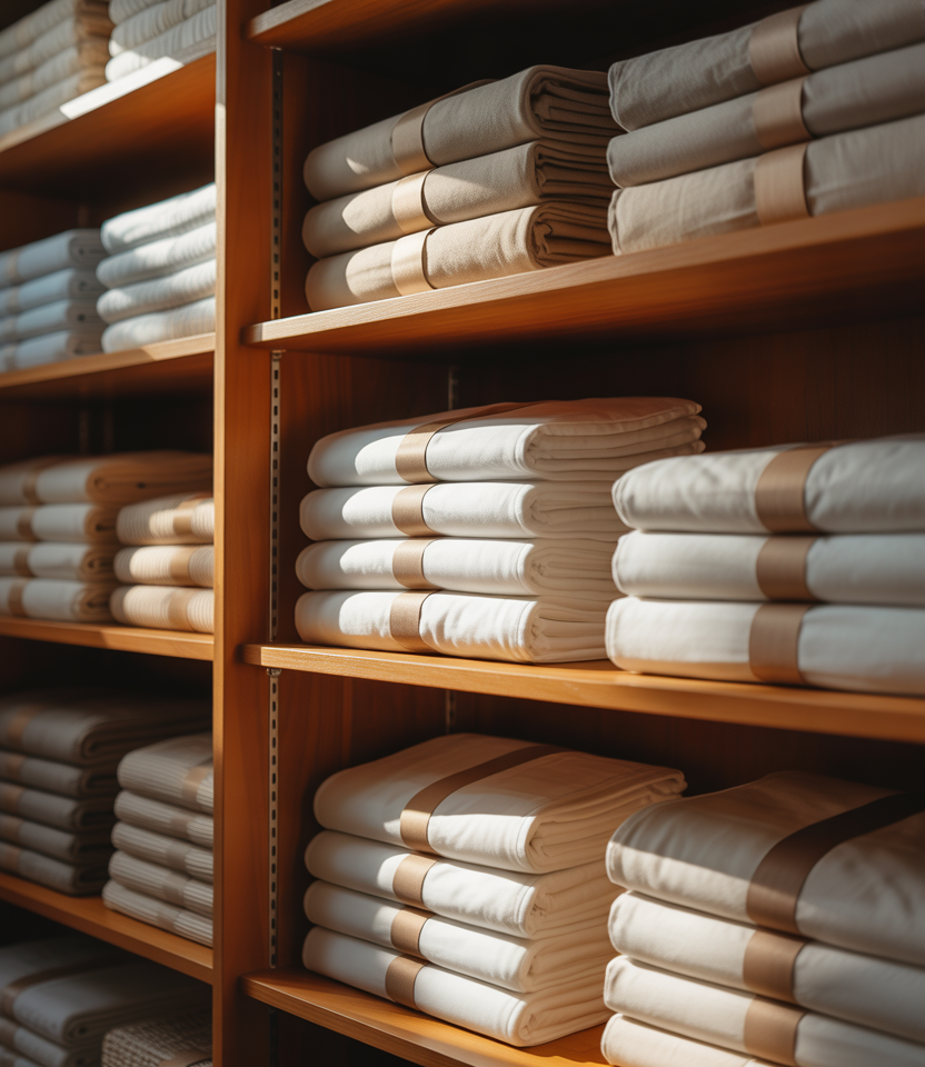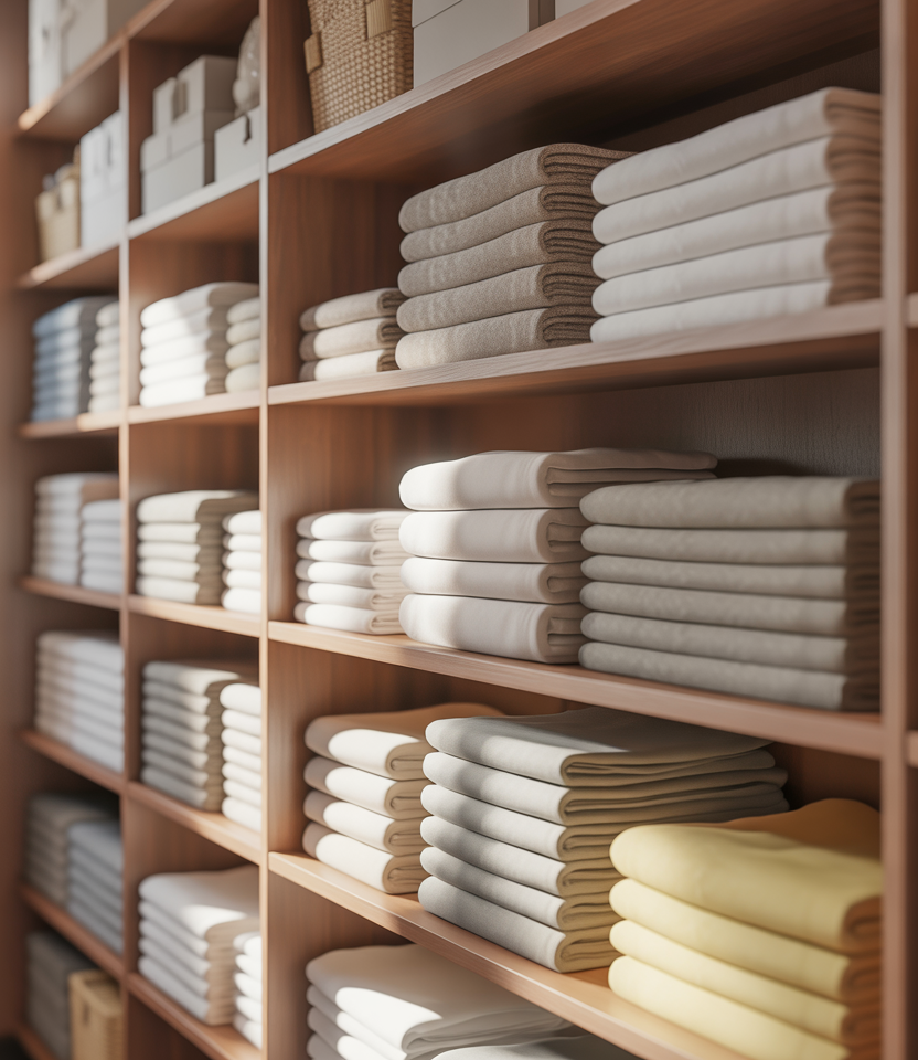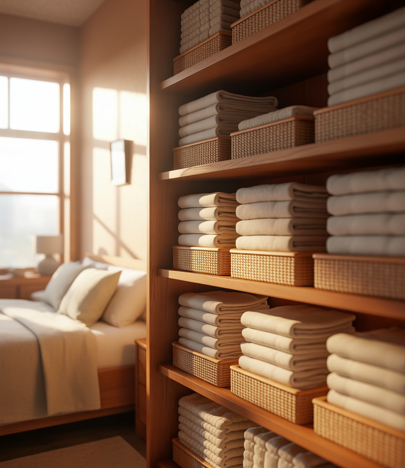 A deep shelf setup is ideal for storing bulky items like sheets and comforters. Thoughtful folding techniques prevent stacks from toppling while maximizing every inch of depth.