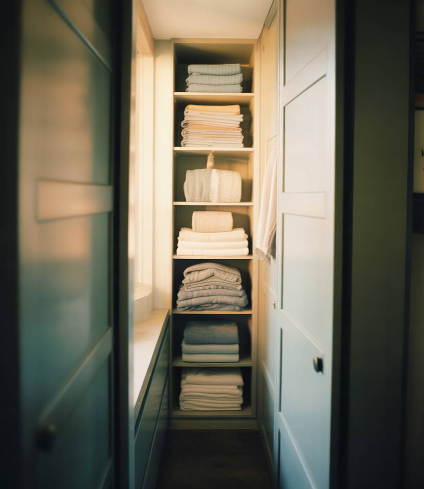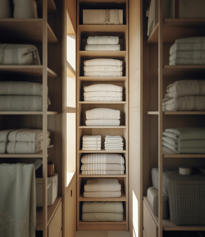 1. Streamlined Linen Closet for Narrow Hallways