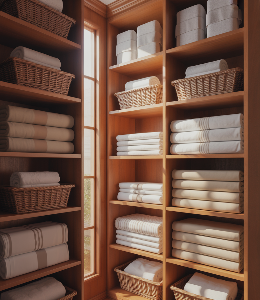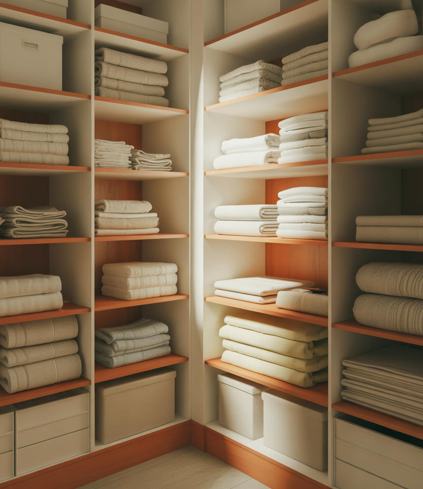 A walk-in linen closet offers breathing room, especially in large homes where storage can be centralized. Often located near the master suite, this type of closet allows for clear zones dedicated to towels, guest linens, and seasonal items.
