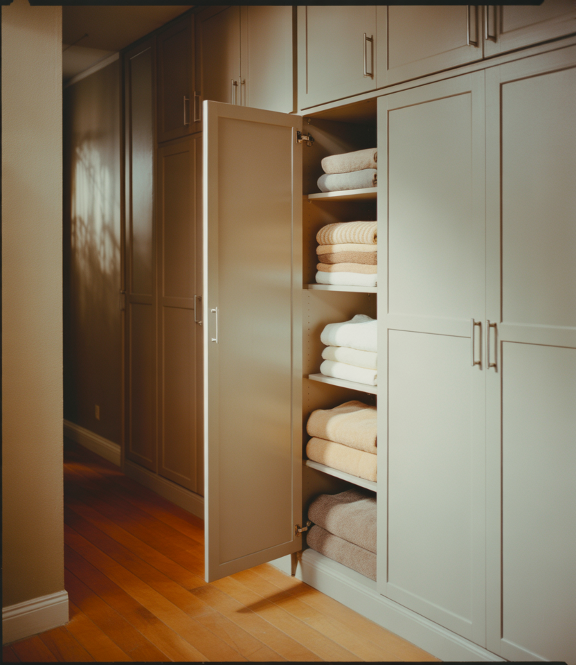 Integrating linen storage into the hall is a smart solution for homes without dedicated closets. Custom cabinets aligned with hallway ideas help maintain architectural flow, while subtle finishes support broader hallway design goals.