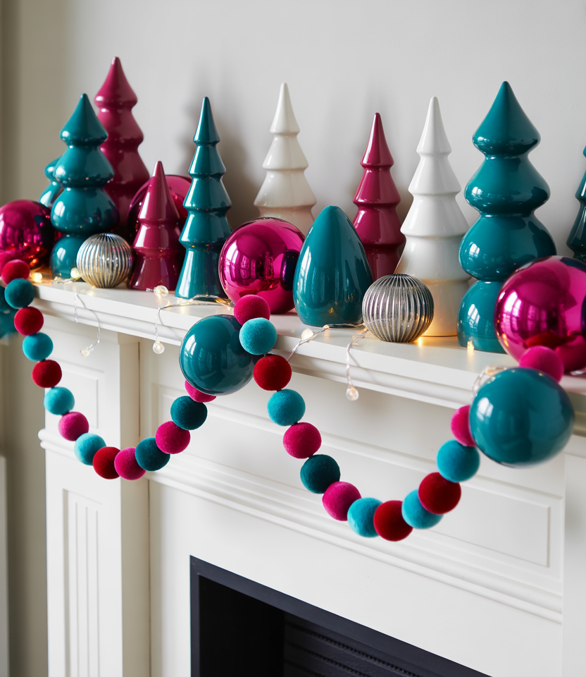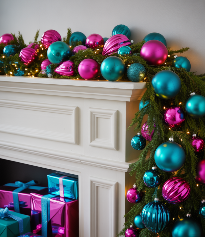 For those who love bold cheer, the colorful Christmas mantel turns traditional holiday tones on their head by adding unexpected pops: teal ornaments, magenta ribbons, neon lights, or bright modern shapes. The key is balance—let the mantel feel festive, not chaotic. According to Architectural Digest, layering color can make a mantel feel dynamic if done with intention. Architectural Digest One year I switched to hot-pink ribbon mixed with turquoise ornaments on a green garland, and the vivacity totally changed the mood in the room.
