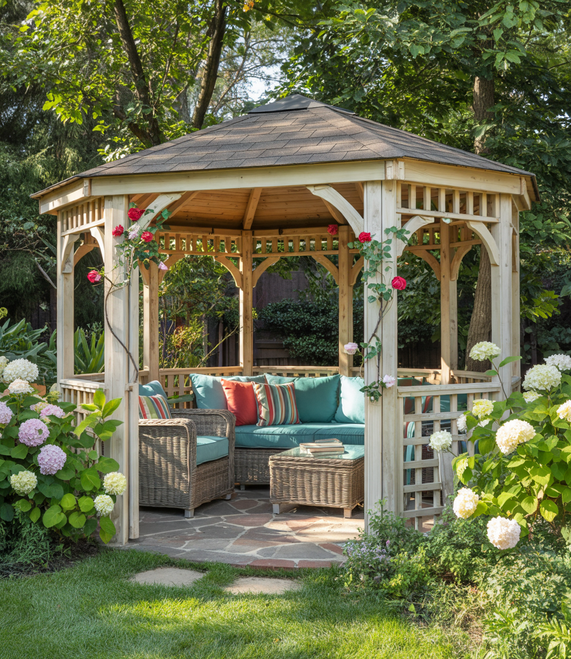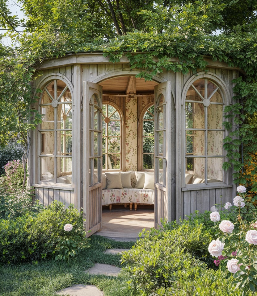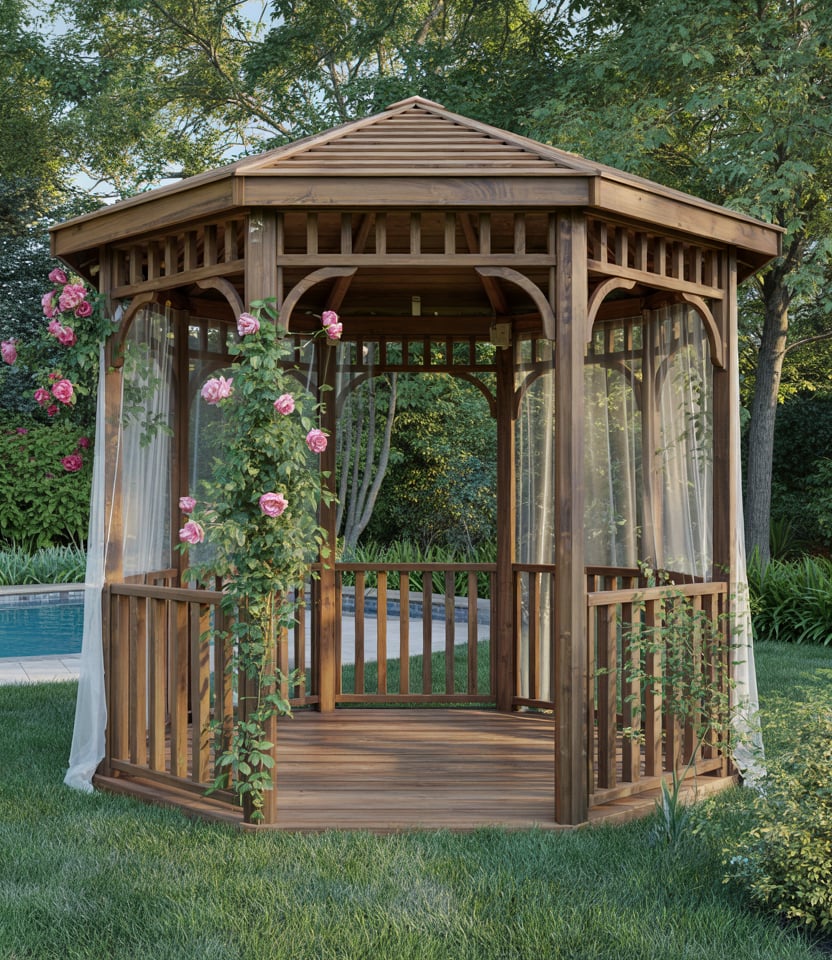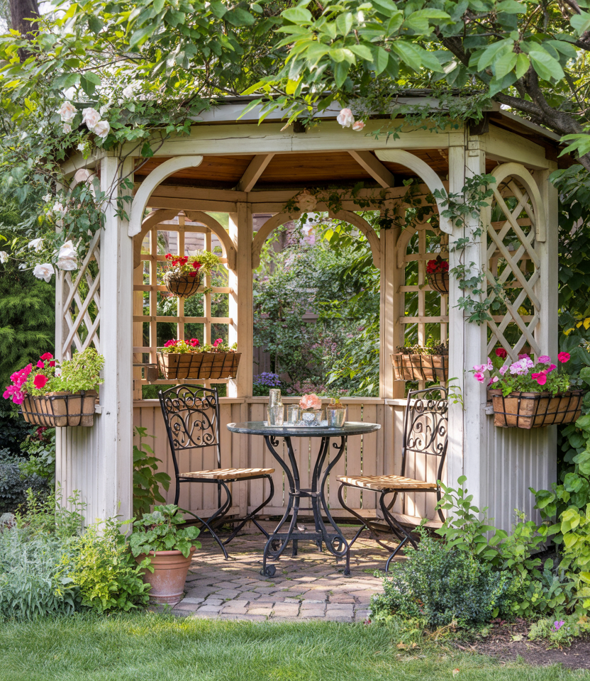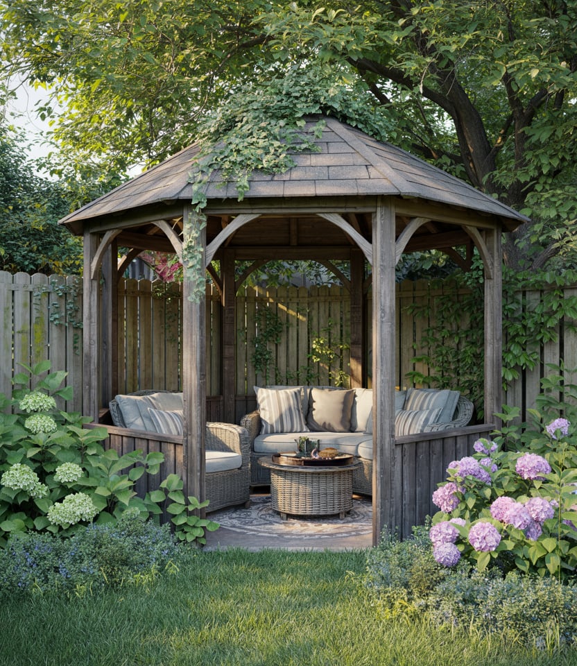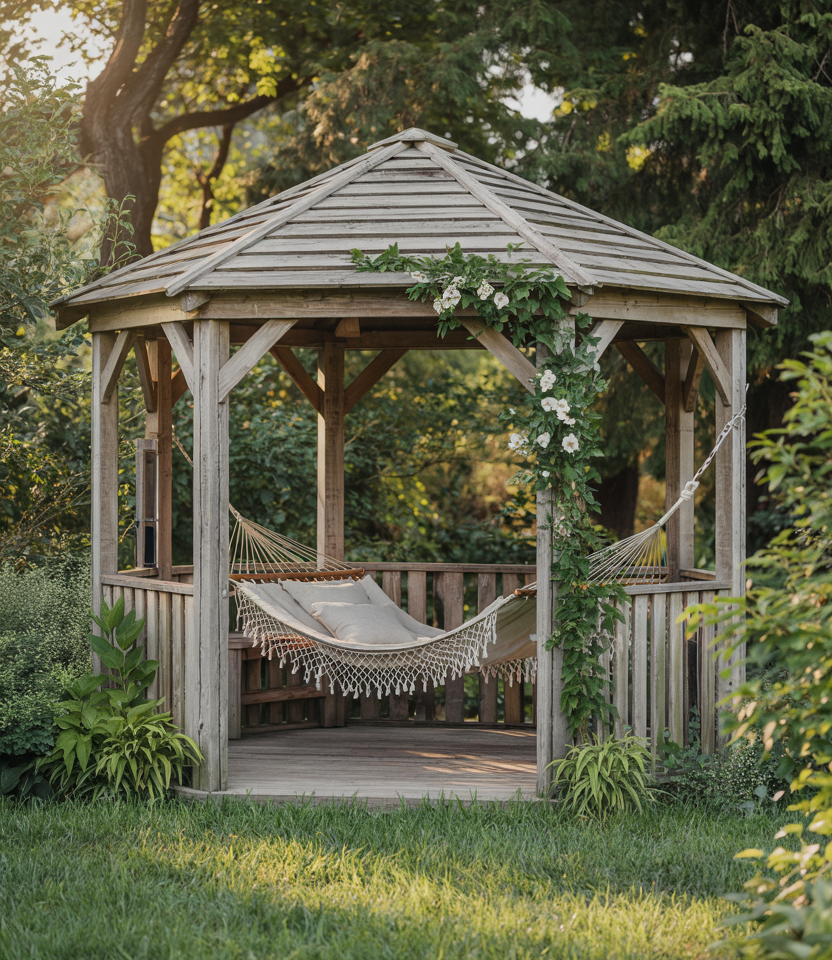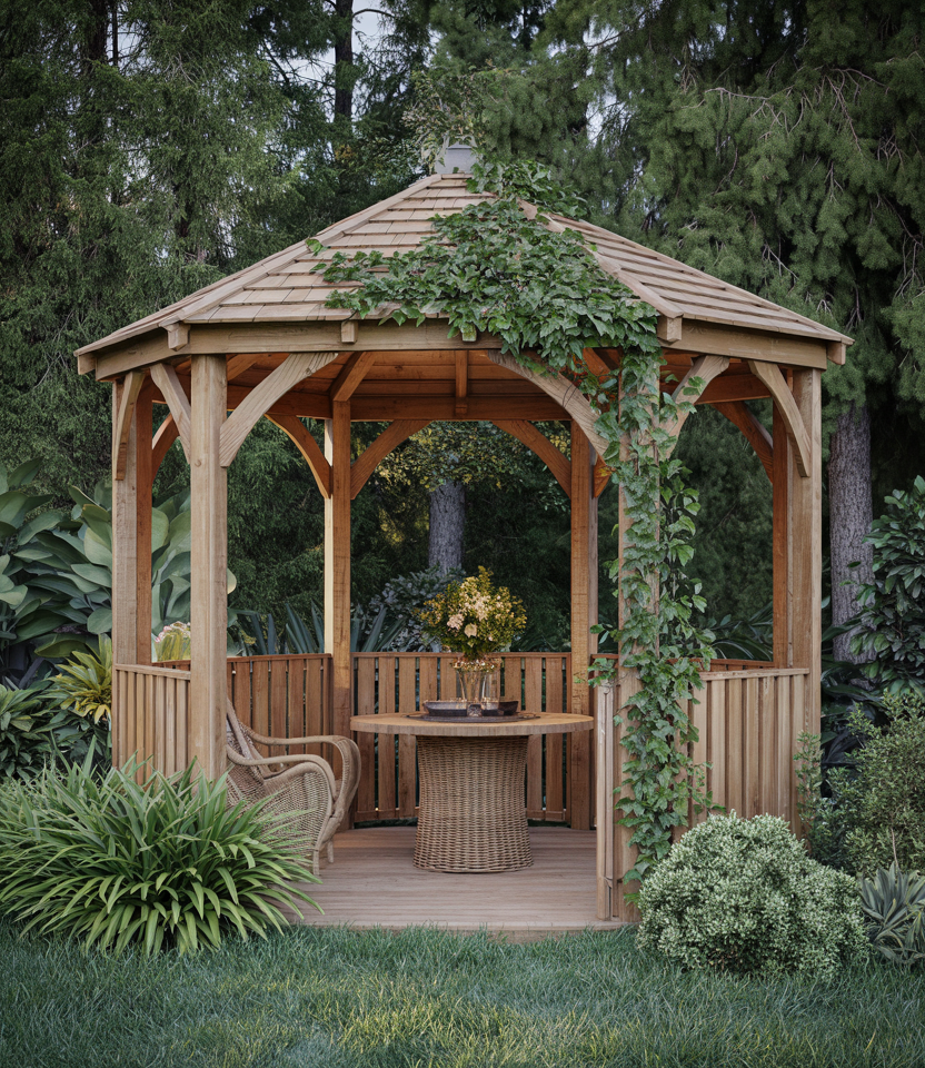 Integrate vines, climbing roses, wisteria, or ivy to cloak the structure in wood and foliage. In essence, it is a living, breathing retreat. Make it covered but airy for the plants to thrive. An early morning in a vine-clad gazebo feels like a secret garden. Garden designers like Piet Oudolf emphasize living architecture.