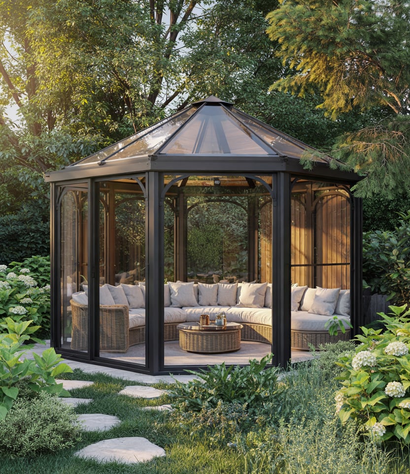 Modern Glass-Walled Gazebo