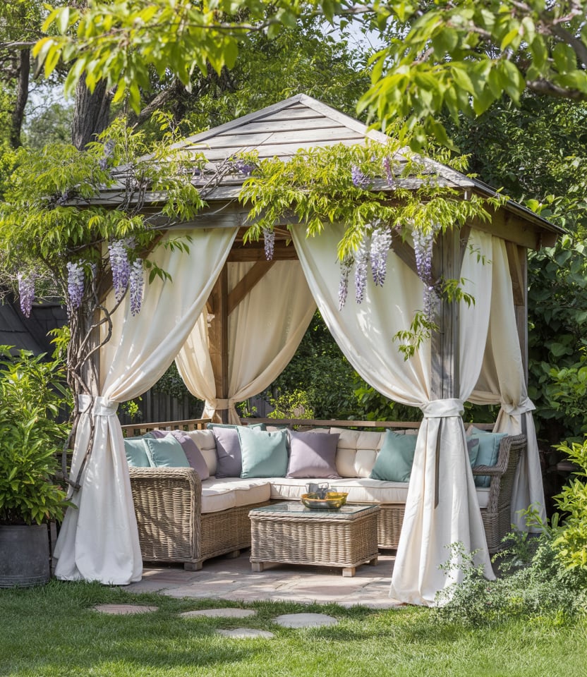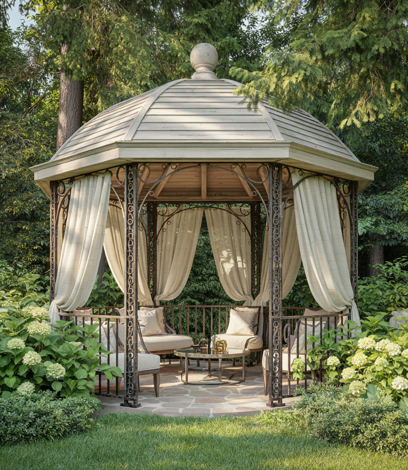 Covered Gazebo with Draped Fabrics