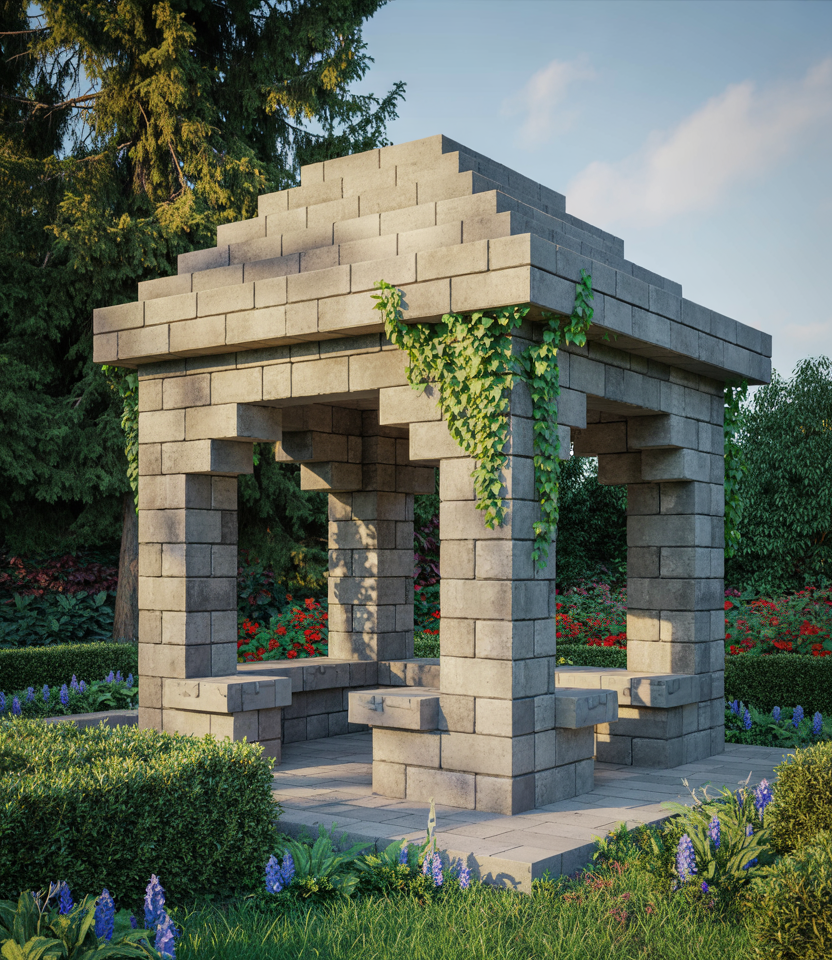 Gazebo with Minecraft-Inspired Geometry