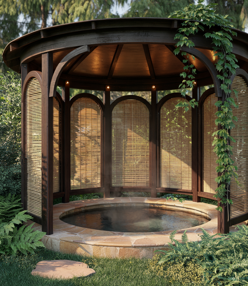 Encasing the hot tub in a wooden gazebo with sliding or folding walls ensures its use all year round. Add privacy screens or trellises. The balance of steam, wood scent, and open air is sublime. A friend’s backyard spa had exactly that configuration-every soak felt like a spa escape.