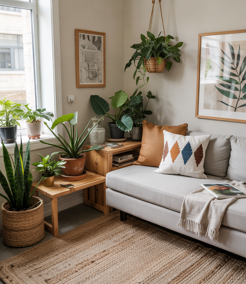 Small Space Earthy Corner Nook