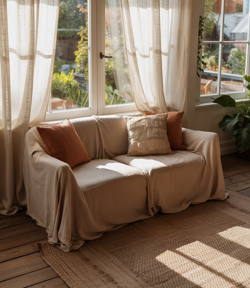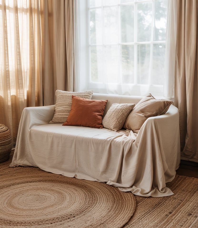Design around natural daylight: sheer linen curtains, light-filtering shades, and minimal window treatments. Use pale earthy hues on walls so light bounces, and accent with wood or clay elements. This warms up small spaces and supports a cozy feel.