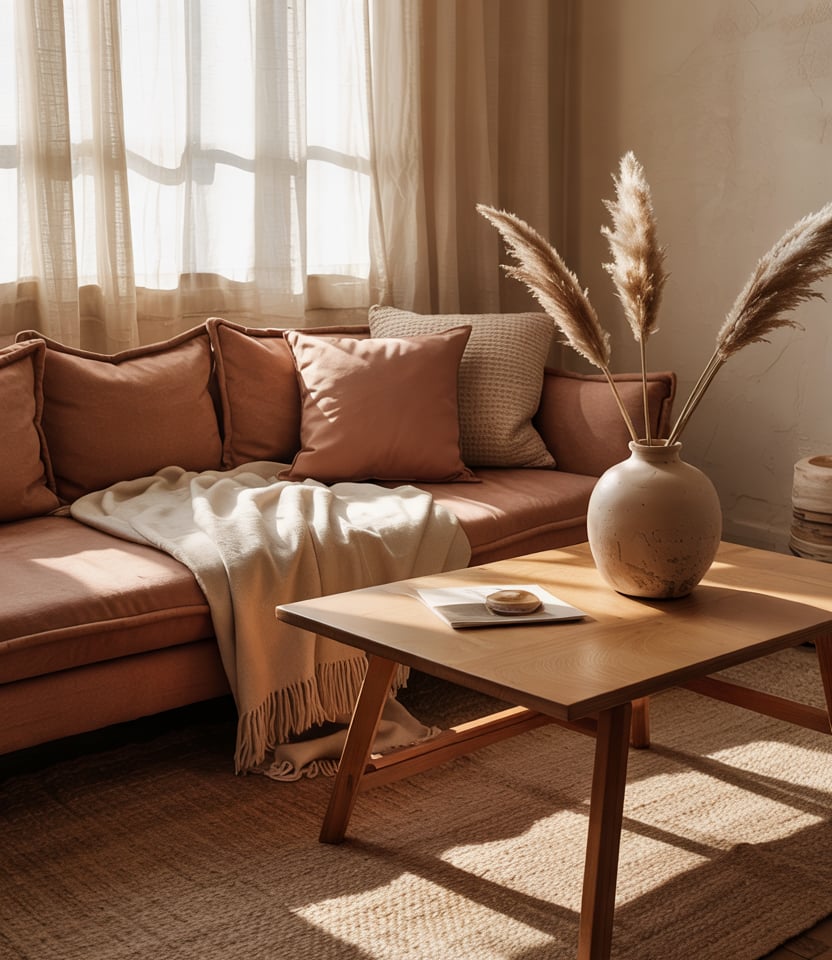 While staying grounded in earth tones, introduce touches of pink—staunch terracotta, dusty rose pillows or vases—that soften the palette. These accents pair nicely with grey couch or a brown couch without overpowering the scheme.