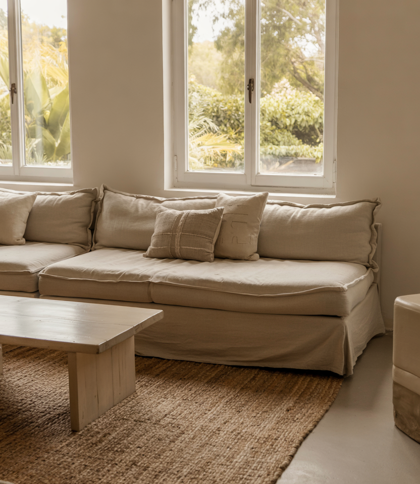 Make texture your main tool—jute rugs, sisal baskets, linen curtains, rattan seating. The palette stays neutral. This suits small spaces, where you don’t need many pieces, but depth comes from surface. A green couch or black couch still works if softened with throws.