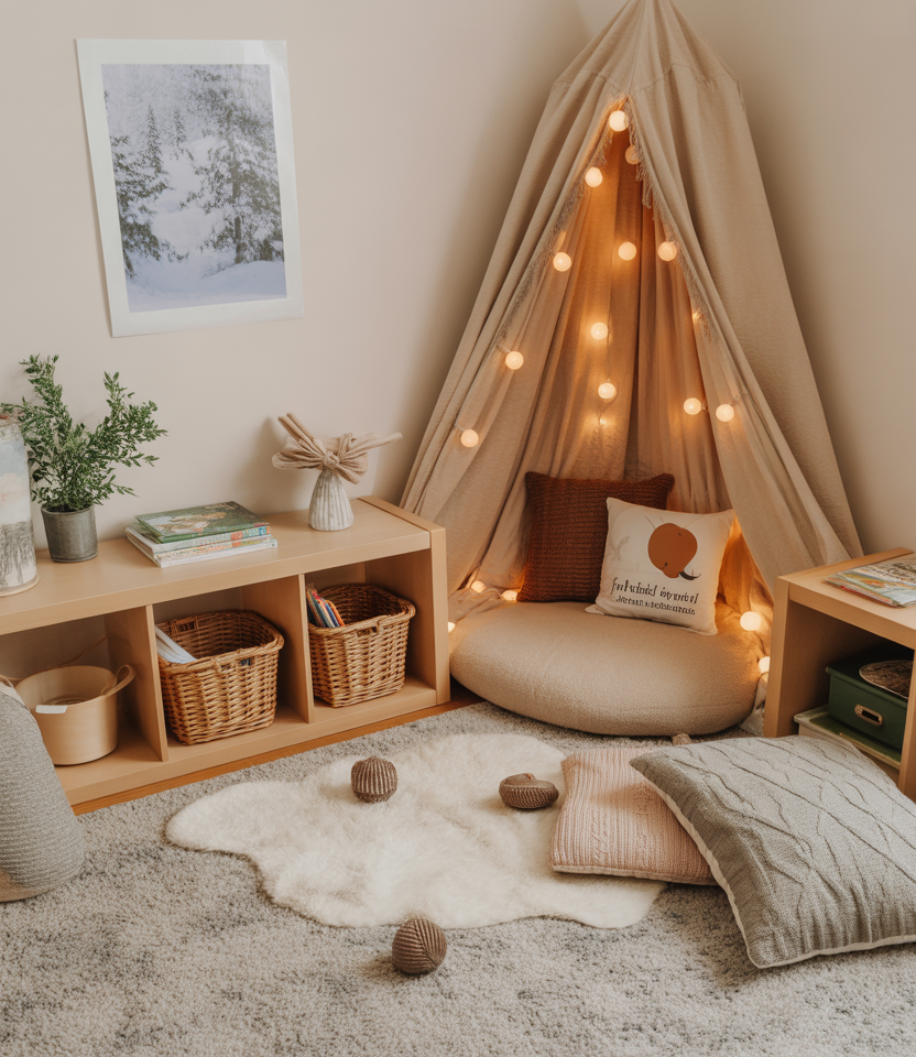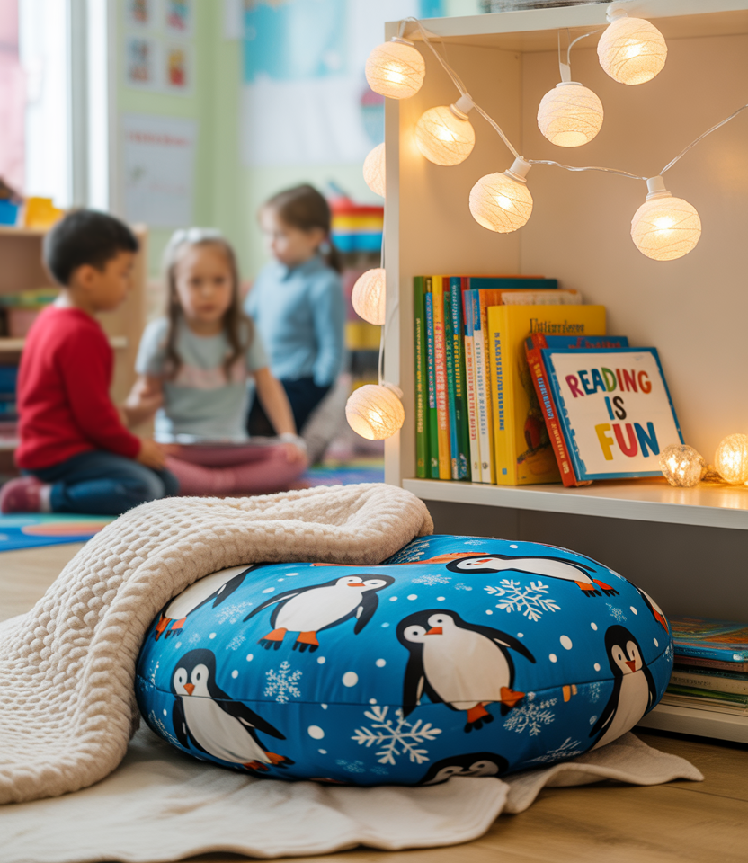 Decorating for the school library corner or for kinder garten classroom scan be simple: pile cozy throws, floor pillows, and fairy lights. Teachers often say that adding soft elements makes winter days feel cheerful and comforting for kids. It’s also budget-friendly when done with diy touches.