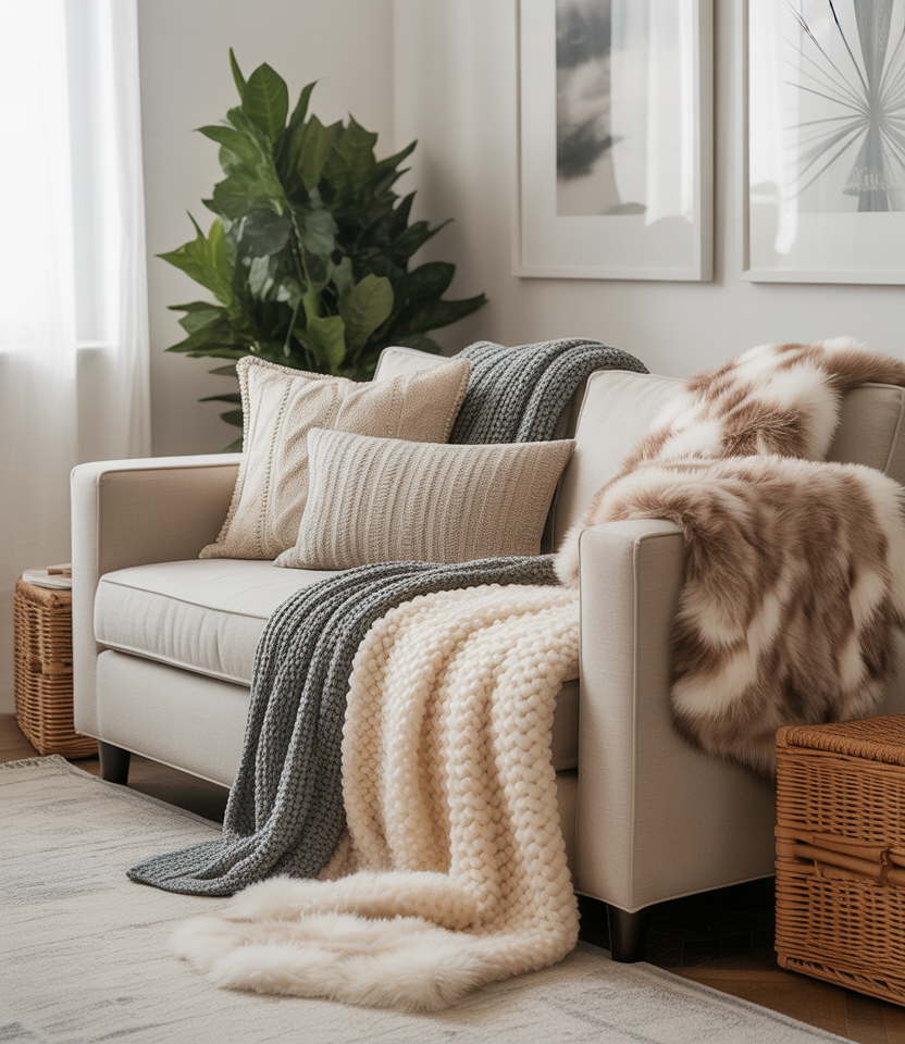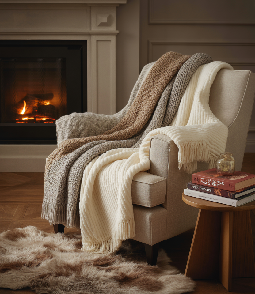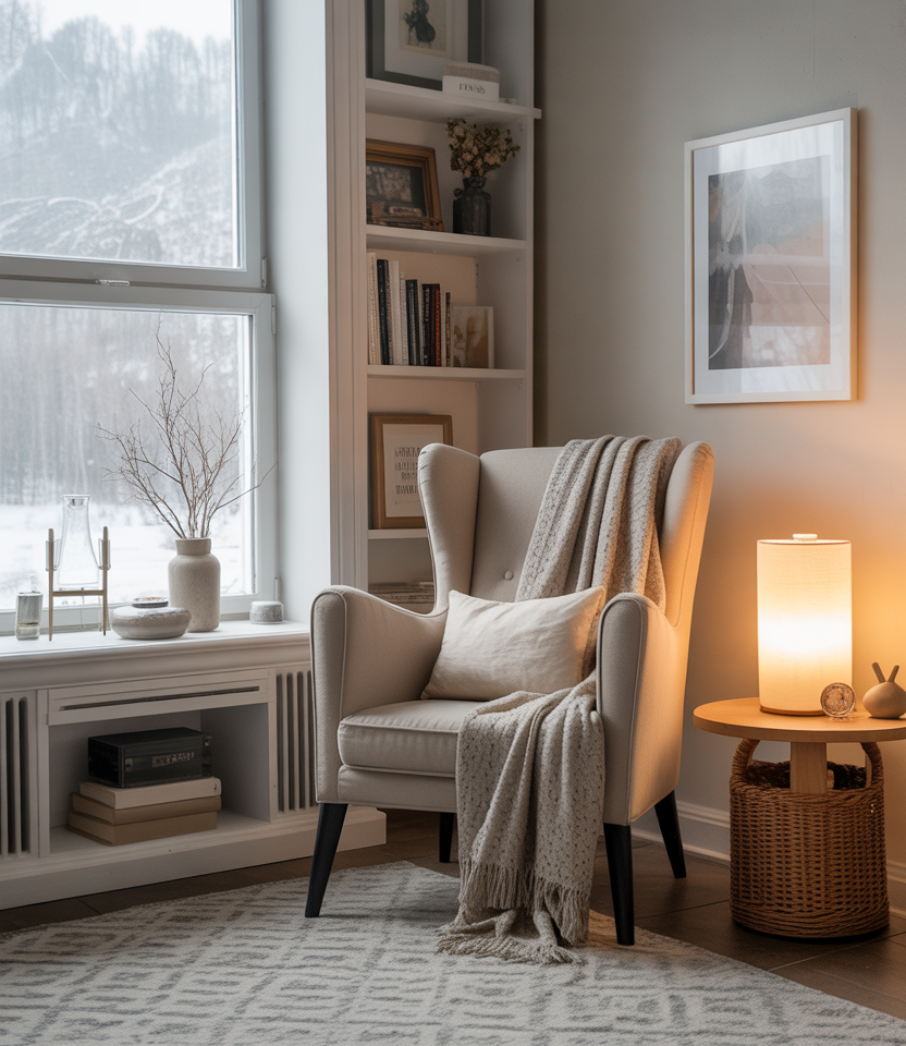 Set up a reading nook with a chair, throw, and side table. This simple idea makes any home cozy in the darker months. Adding a basket of books or puzzles helps families reconnect, especially in the home living rooms. Warm lighting turns the corner into a sanctuary.