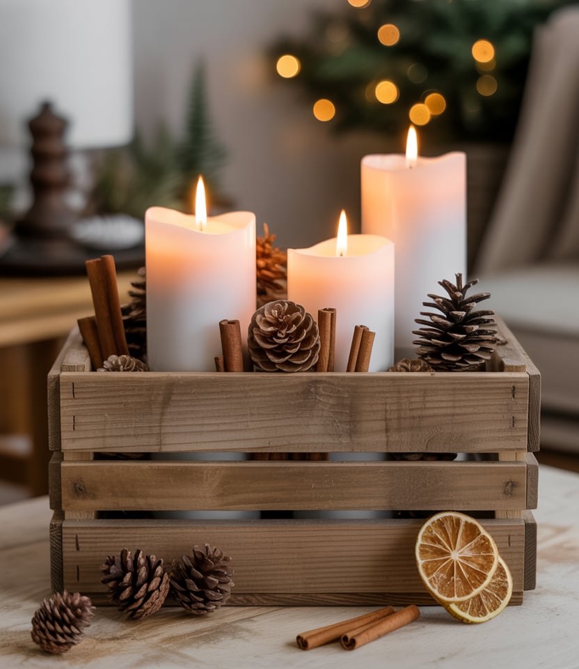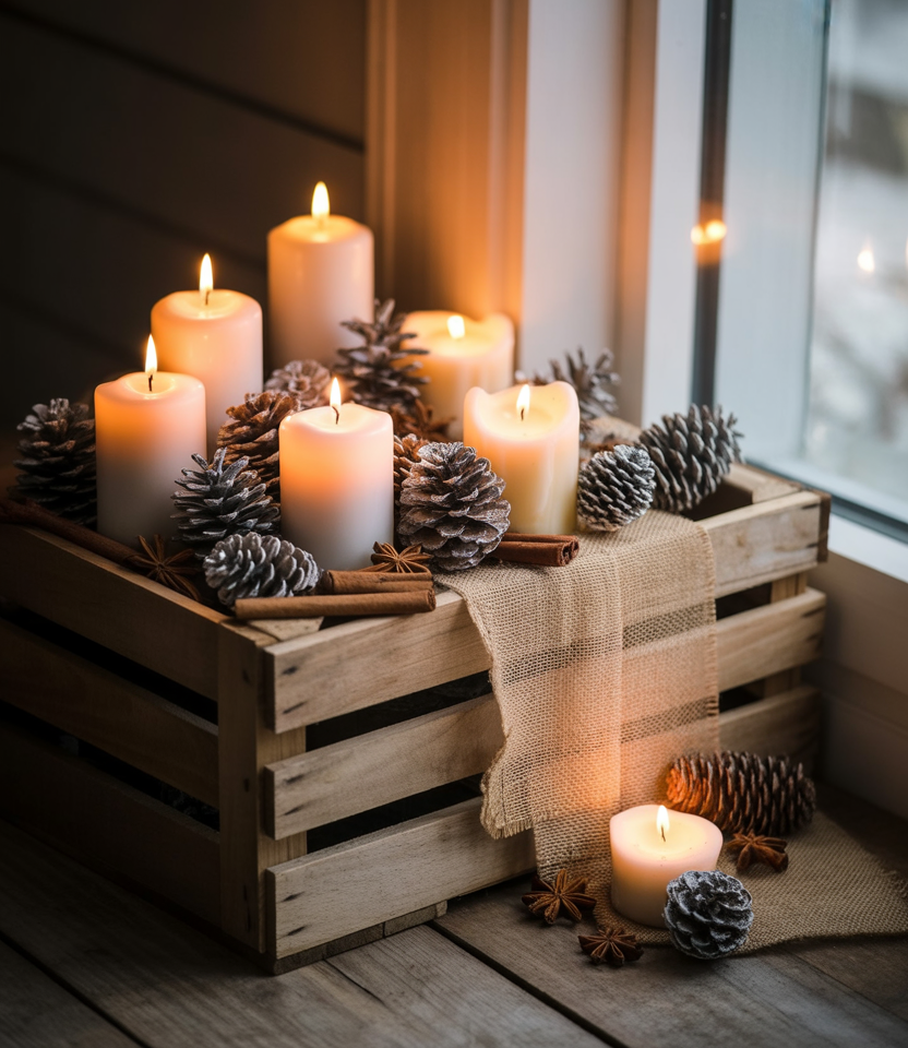 Candles arranged in rustic trays or old crates bring warmth. Many designers say it’s one of the easiest for the home rustic projects. Perfect for fire places, mantels, or dining tables, these for the home diy displays make evenings special. Adding pinecones or cinnamon sticks enhances the seasonal feel.