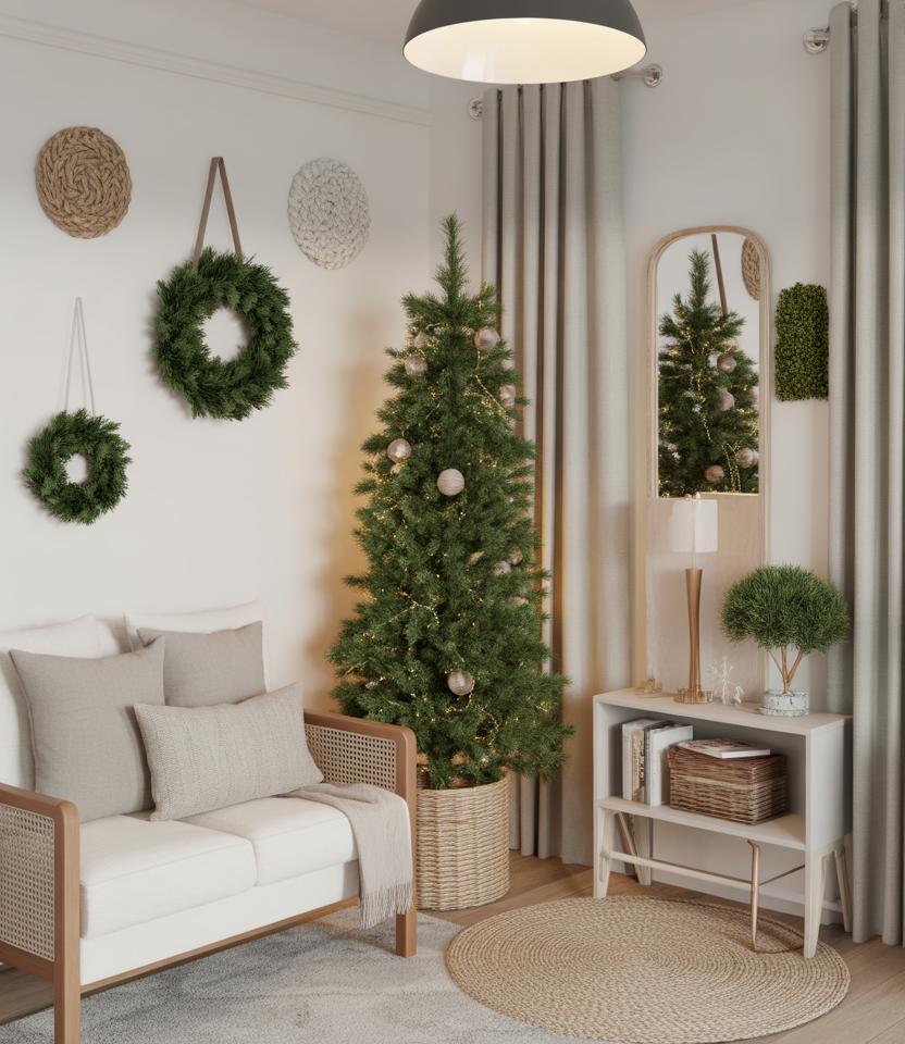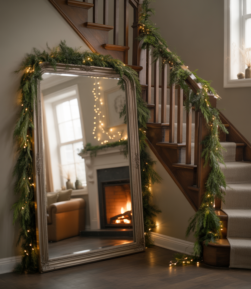 Replacing holiday décor with fresh greenery feels timeless. Hang garlands over mirrors, doors, or stair rails. This style is often recommended by House Beautiful as a natural bridgeafter Christmas and into for the home 2026 trends. It’s especially refreshing for small spaces, keeping life indoors.