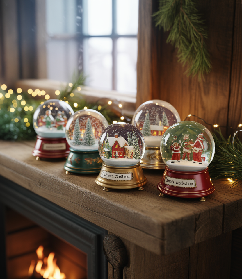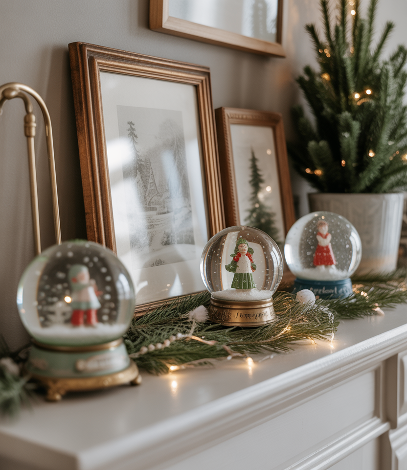Snow globes never go out of style, and collectors proudly display them on mantels, for entryways, or in the home living rooms shelves. Their vintage charm brings both nostalgia and a playful touch. Mason jar DIY versions are popular, making this a great for the home diy idea.