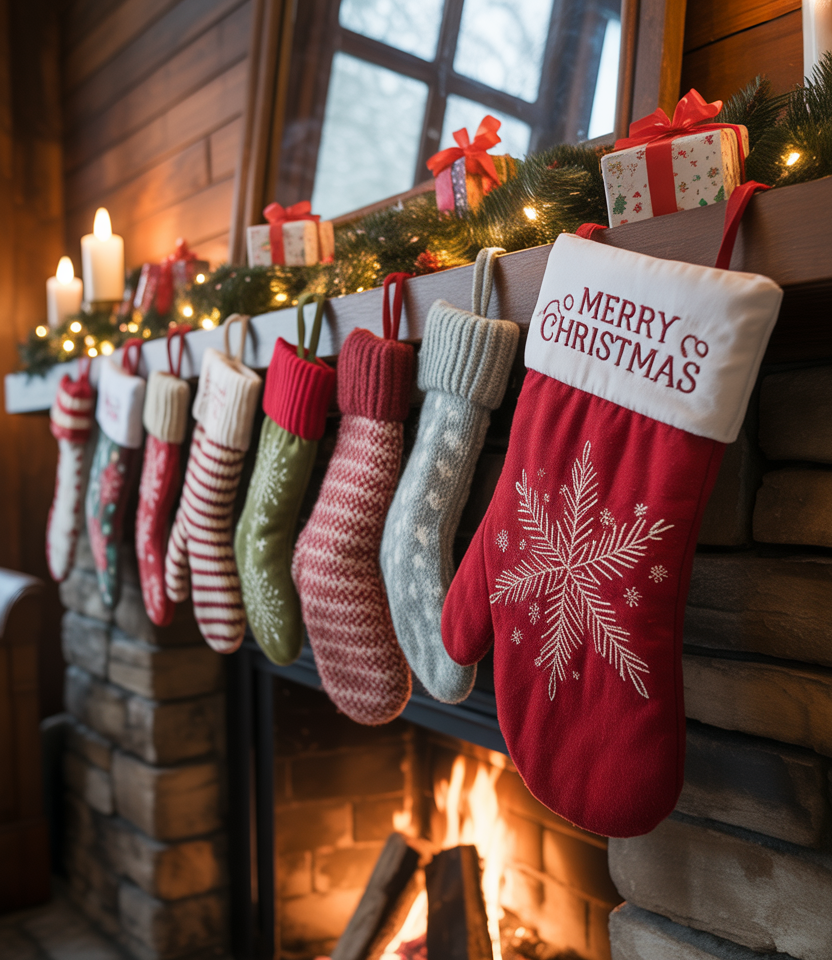 Instead of traditional stockings, hang baskets, mittens, or fabric pouches for fireplaces. This trend, noted by Apartment Therapy, adds a twist on tradition. It works beautifully after Christmas, keeping décor relevant but less holiday-focused.