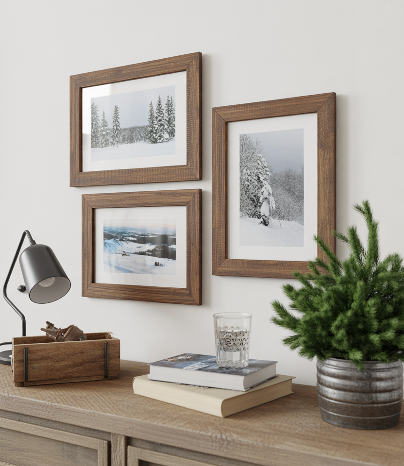 Winter wall art using reclaimed wood or prints of snowy landscapes adds character. It’s particularly stylish for the home rustic looks or the home 2026 trends. Even small framed pieces work well for small spaces, bringing seasonal beauty with out clutter.