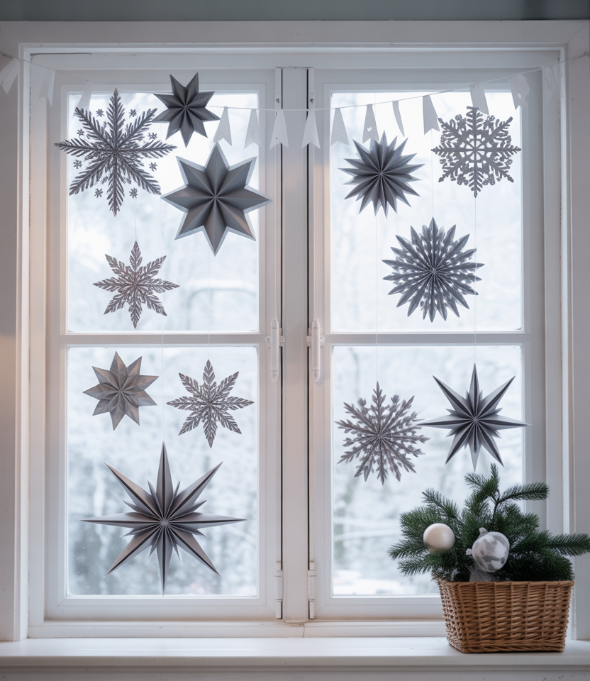 With paper snowflakes, hanging stars, or simple garlands, windows can be transformed into enchanting scenes. This is suitable for school,kindergarten, or any family-friendly diy activities. In the home living rooms, winter-decorated windows turn into glowing back drops for active evenings.