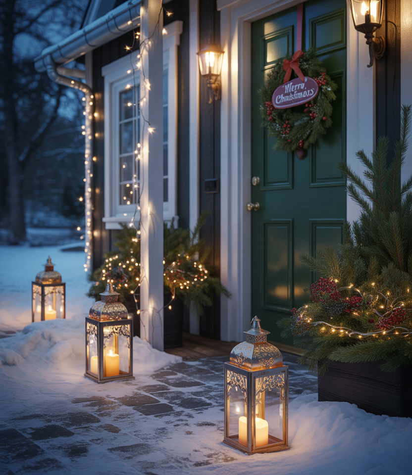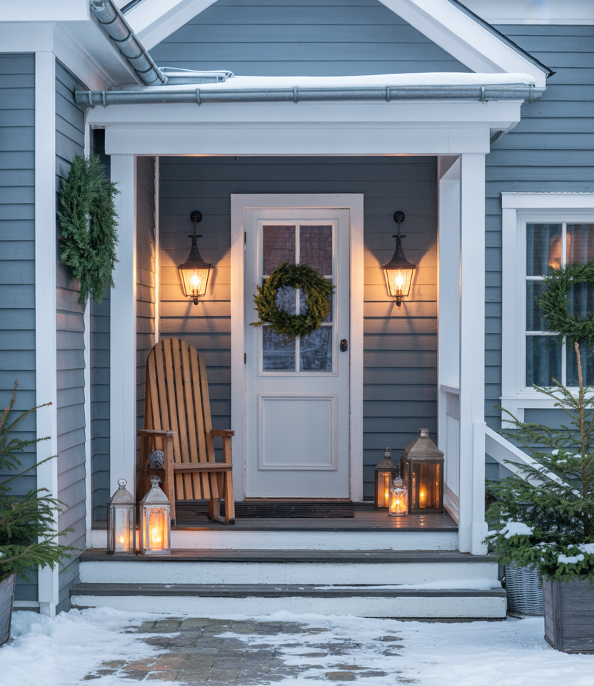 Lanterns filled with candles or fairy lights are timeless. Designers like Joanna Gaines recommend them for entry ways, front porch, or stair wells. They shine after Christmas when twinkle lights still bring joy but without the full holiday setting.