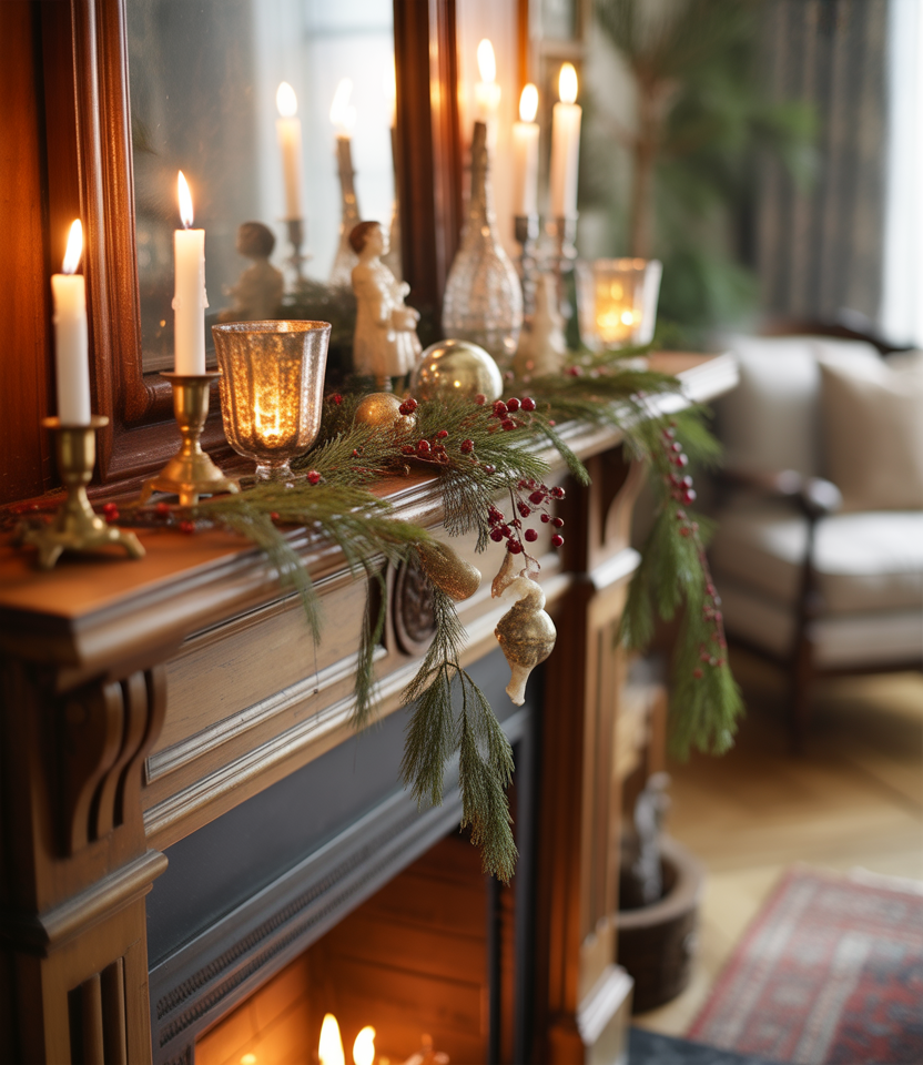The addition of vintage ornaments, mercury glass, and antique candlesticks in your décor make winter eternal. Countless collectors share that hanging down heirlooms makes decorating more meaningful. It works really well for the home rustic interiors, or by fireplaces, where nostalgia meets flickering lights. From a flea-market treasure to grandma’s crystal bowl, the seasonal style gets an instant upgrade.