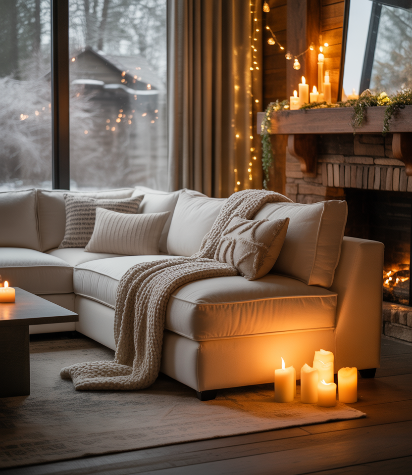 In winter, living rooms come alive as a glow is cast. Whether it be floor lamps, string lights, or candles, they all share the warmth of glows. This trend of glows suits the home cozy spaces where families bind together. The position of a lantern can work wonders, especially when space is tight and warmth is dearly missed.