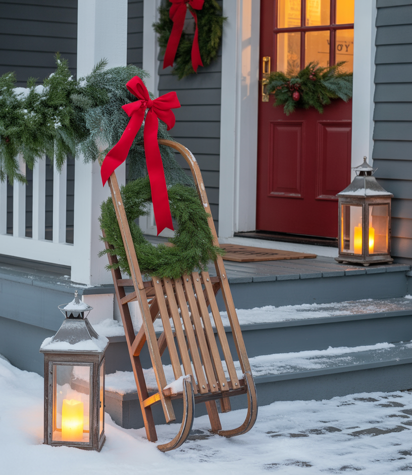 Decorated Front porches create a perfect setting for winter hospitality. Simple wreaths, wooden sleds, and lanterns bring images of warm welcome to mind. Garlands of evergreens or dried oranges make for entry way transitional beauty. That is a winning set for families decorating for the school entrance or kindergarten-small touches that do matter.