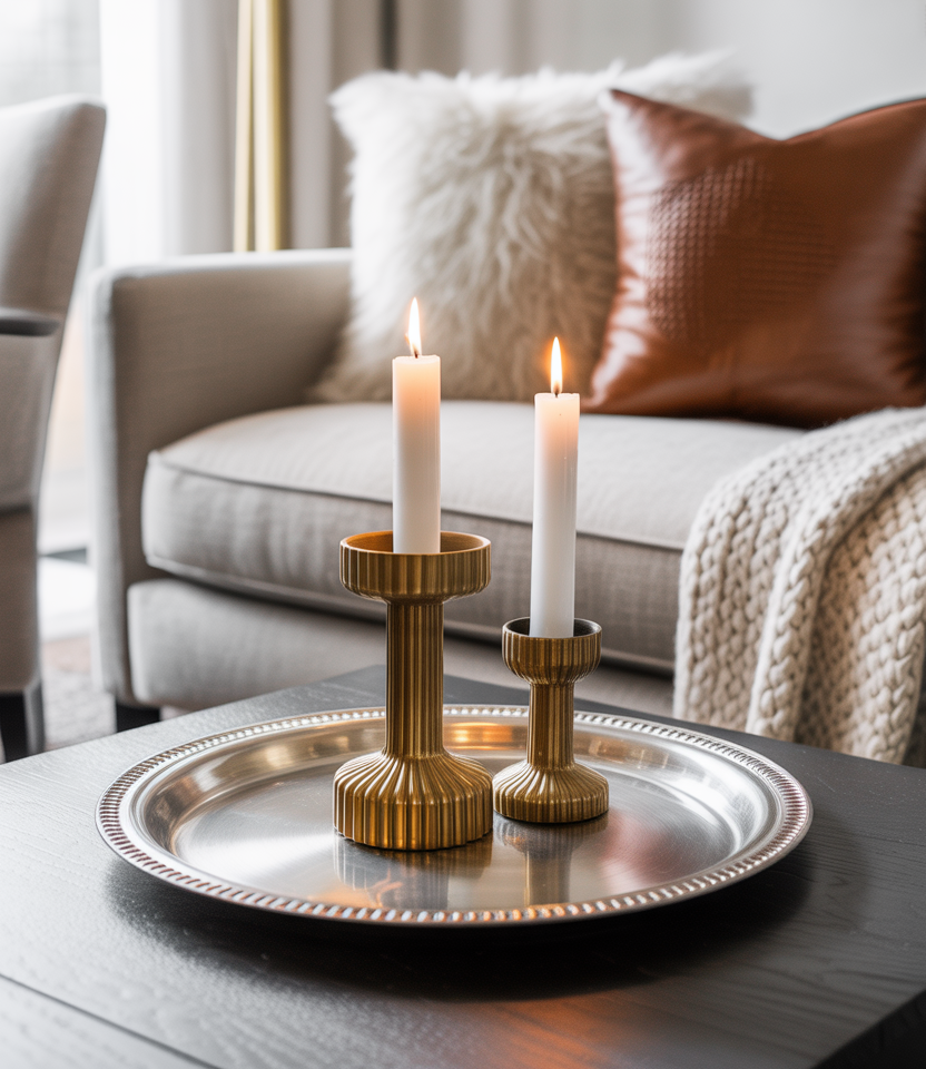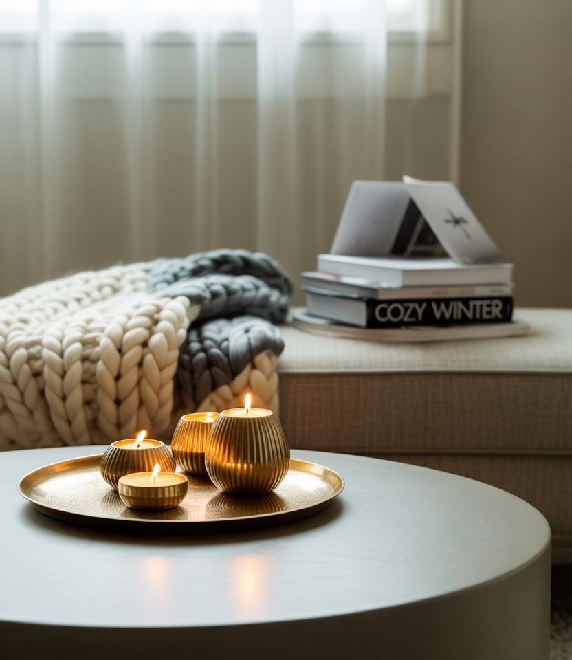 Metallic accents give amodernwinter space sparkle. Brass candleholders or silver trays reflect what little light there is on the cloudy days. Designers such as Kelly Wearstler like to offset the metals with rough textures, which makes the room feel both luxurious and approachable. Adding these inLiving rooms cozyprovides a little sparkle without undermining the warmth.