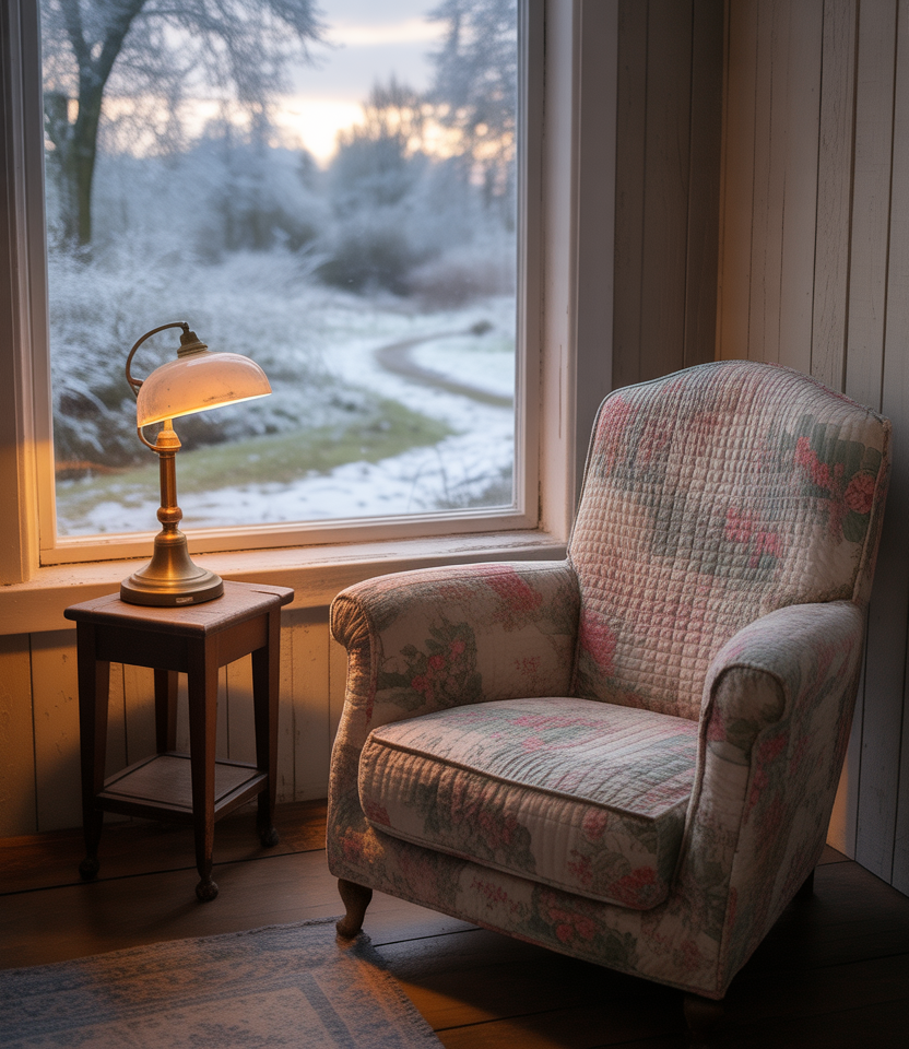 CottageVilla just feels appropriate all winter long. Consider wool rugs, floral curtains, and stacked firewood. I grew up in New England; for me, the charm of the small room filled with layered texture always felt grounding in the snowy season. The key here is mixingcreativepatterns with tactile comfort. Florals paired up with plaid scratches on the subdued glow of the lamp.