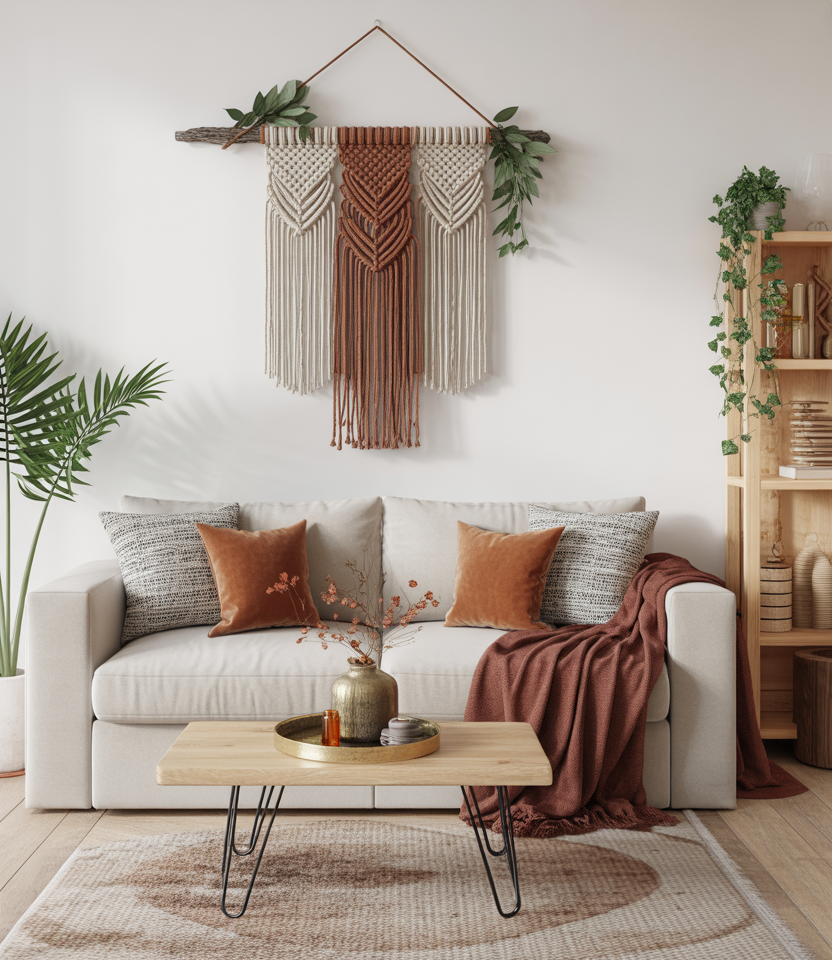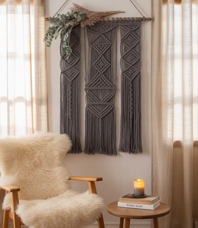 Bohoplaces often use woven wall art, but in winter, the deeper tones and geometric patterns feel right. Add a macrame hanging in burgundy or navy, or even weave in greenery. A friend of mine makes her own as adiyproject, and the result is always personal and stylish. It works in bothLiving rooms modernand bedrooms.