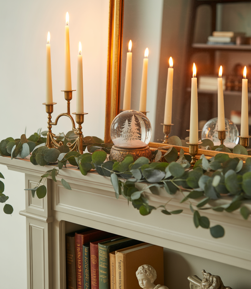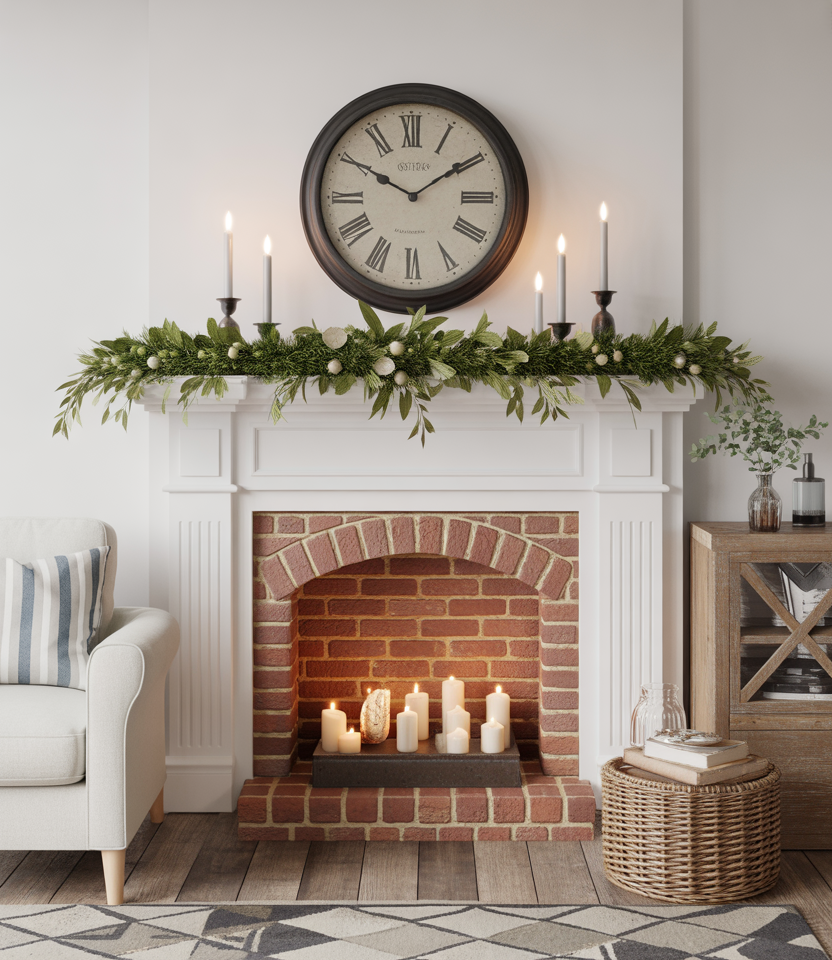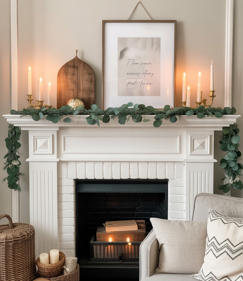 Your mantle is the star for the whole room. Many stylists for 2025 recommend garlands of eucalyptus paired with simply designed taper candles for a cozy yet elegant display. Whether you own a cottage or a modern Living room, the mantle stands at the heart of the space. My grandma would place handwritten notes or old photos in between garlands for a really personal,vintage vibe.