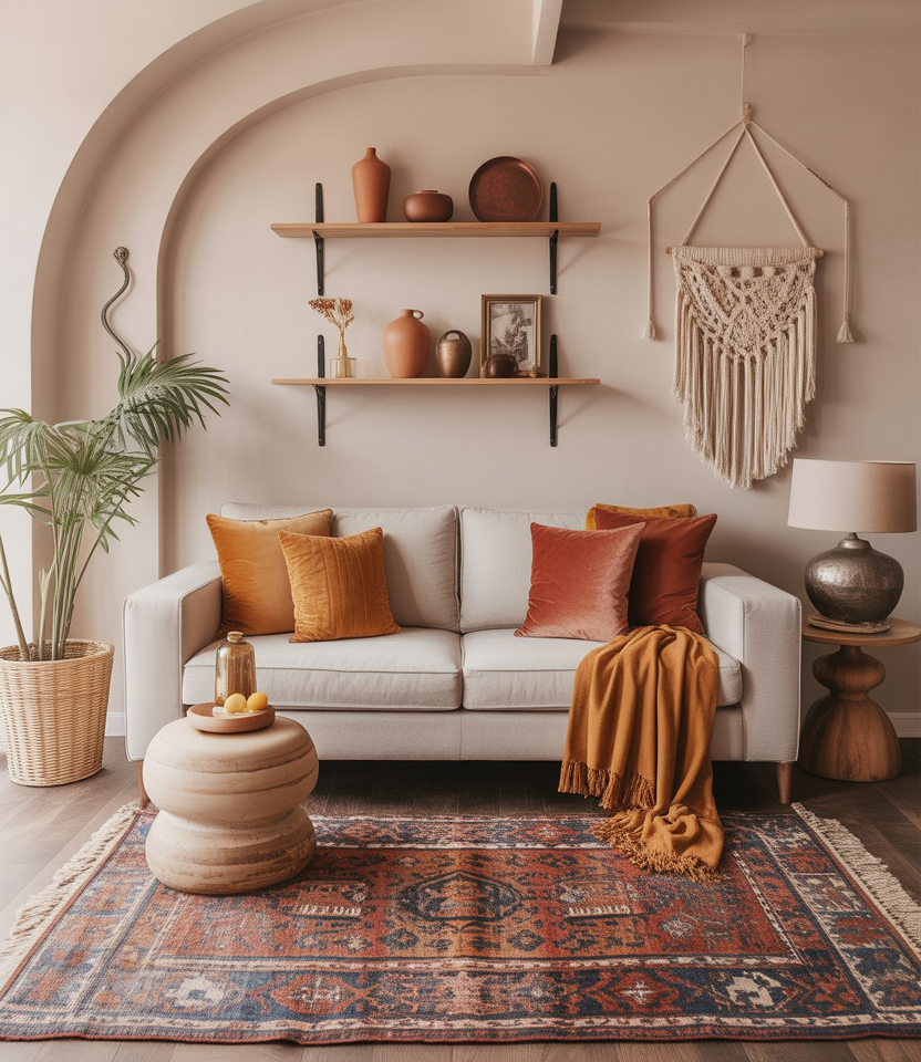 Kitchen Boho Interior design is all about freedom and an eclectic spirit. During winter, this means mustard pillows with terracotta pots and tantrums from the rugs. It thrives on creative expression- blend those textures without any deep thought. I layered three rugs on a loft with barely flooring space one chilly January, and it was not only a lovely cozy feeling but all was practical in keeping out the chill.