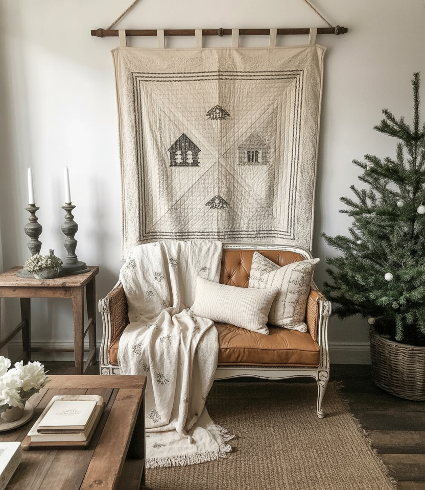 One side ofvintagesmaker in a winter decor will never go wrong. Winter magic is created by antique candlesticks, heirloom quilts, or reclaimed woods living roomsor bedrooms. My aunt still hangs her grandmother’s quilt in the winter of the best seasons; it is both an art piece and something that gives warmth. Designers at Apartment Therapy always say that nostalgia makes a place intimate.