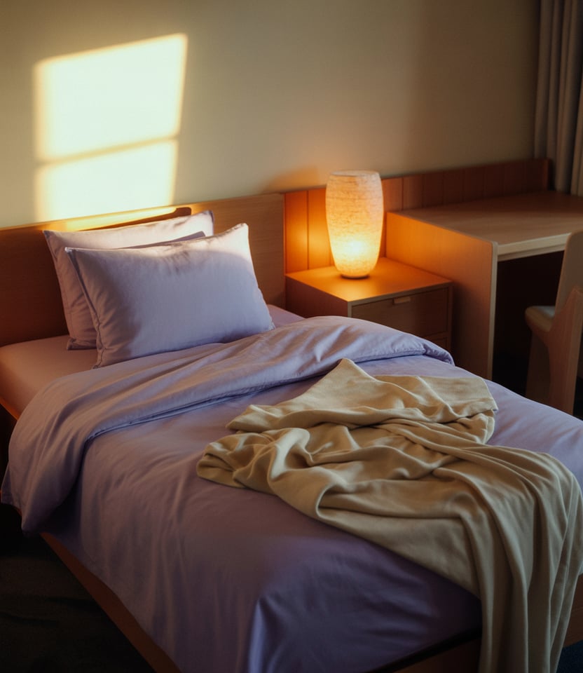This dorm idea centers on a calming nighttime setup using purple tones layered with cozy textures. It’s especially appealing for students who need a clear separation between busy daytime energy and quiet evenings.
