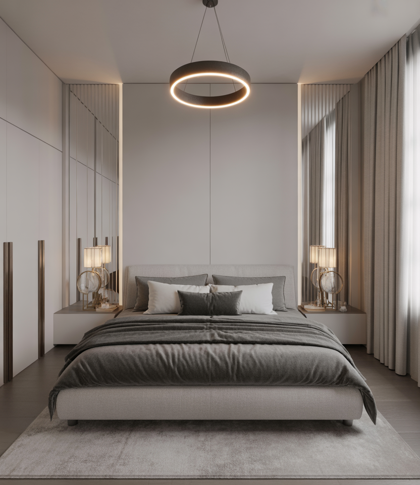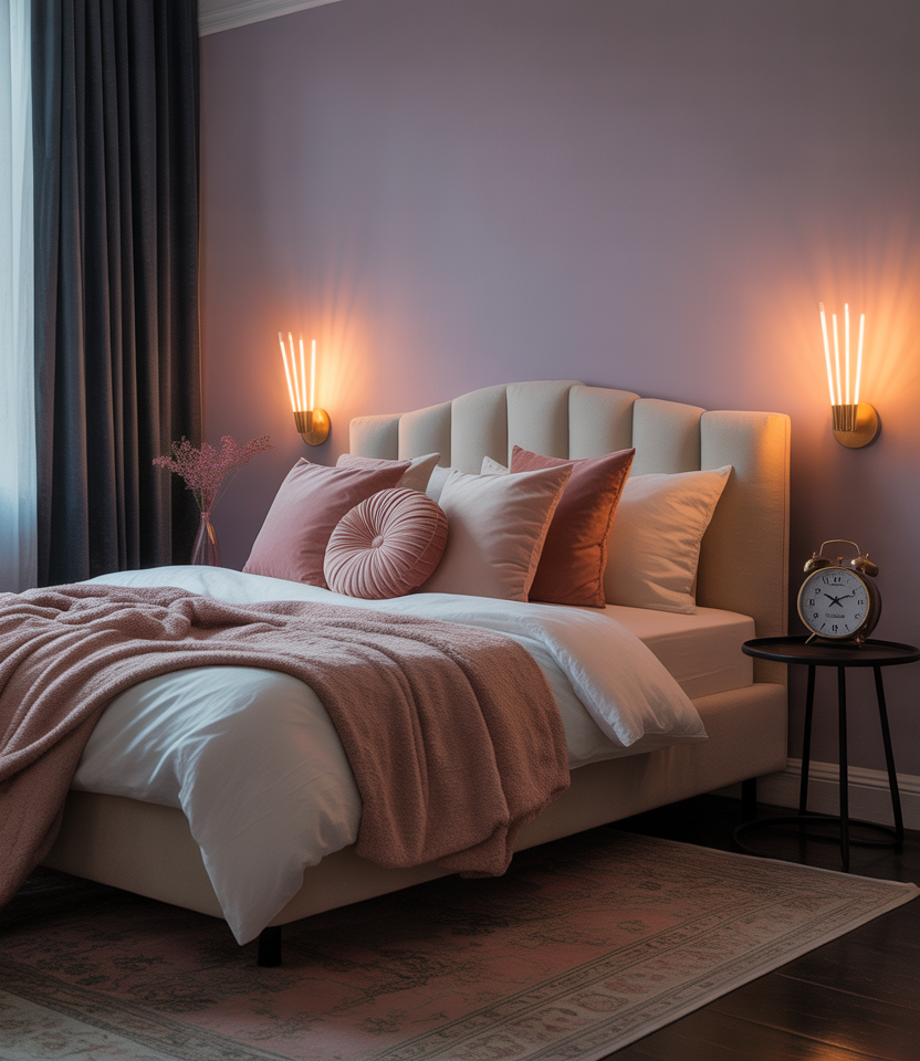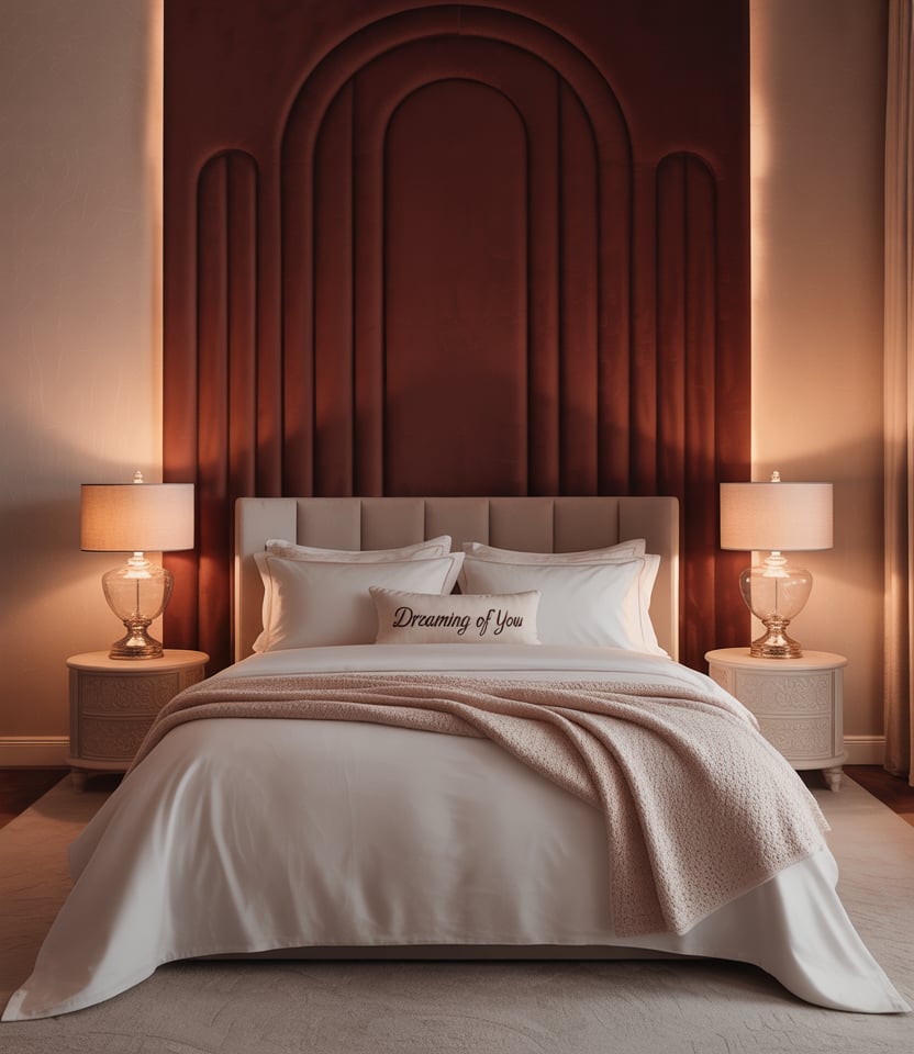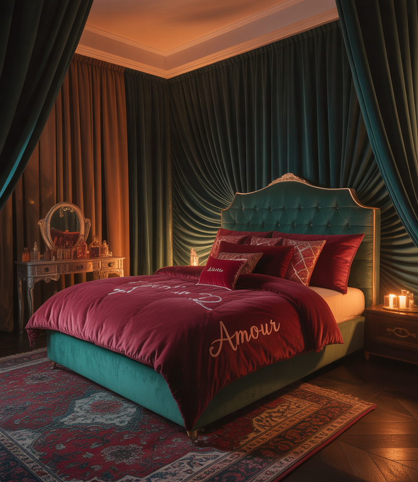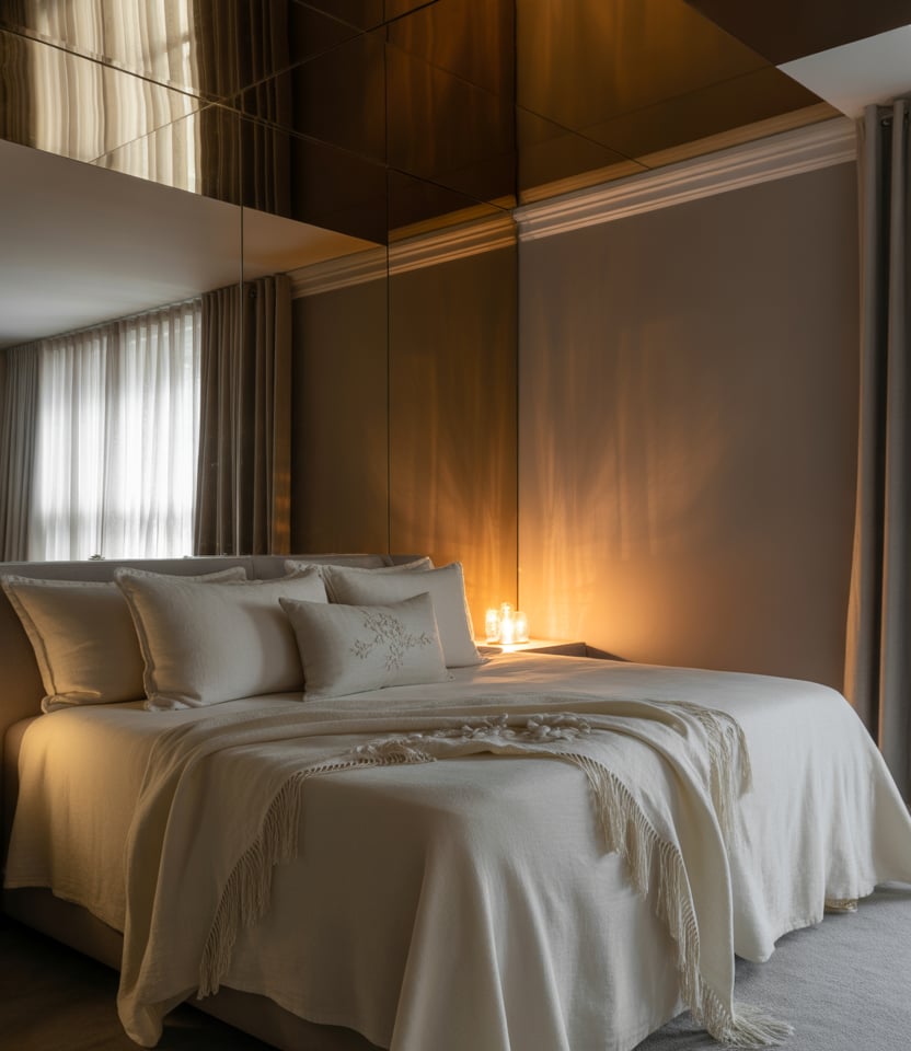 An accent wall of mirrors or an overhead mirror above the bed adds sensual dimensions for Valentines or couples seeking visual intrigue. Use a subtle tint to maintain softness. One designer told me mirrors amplified mood lighting beautifully.