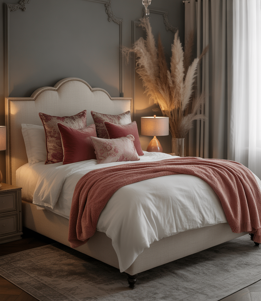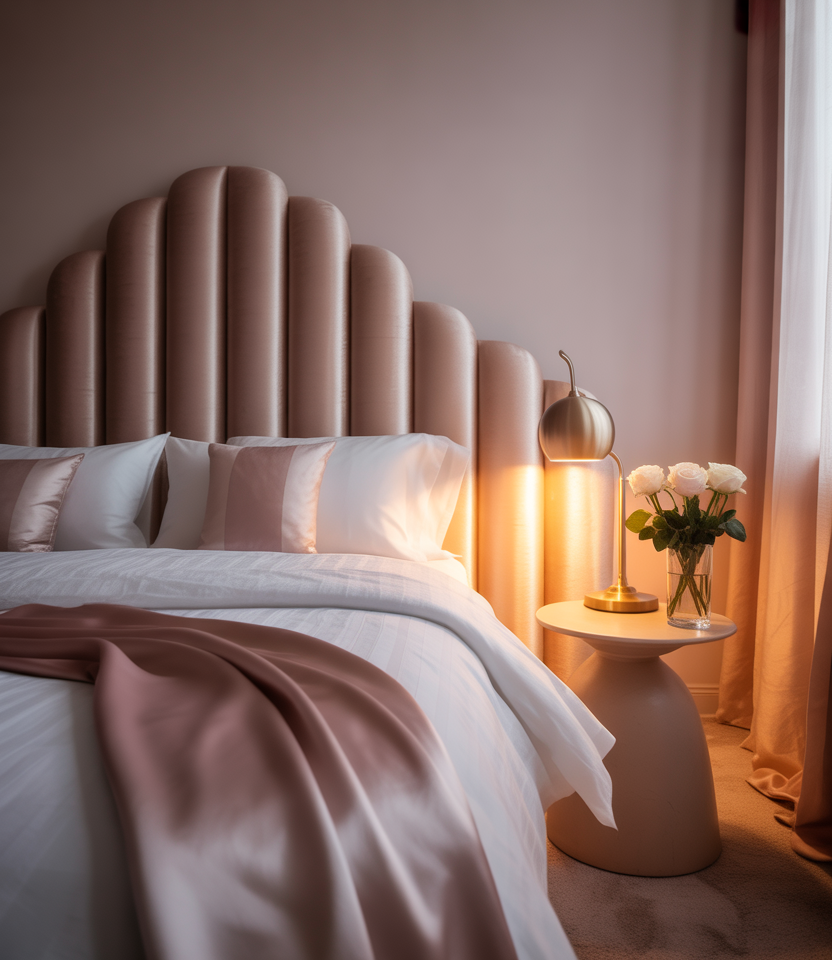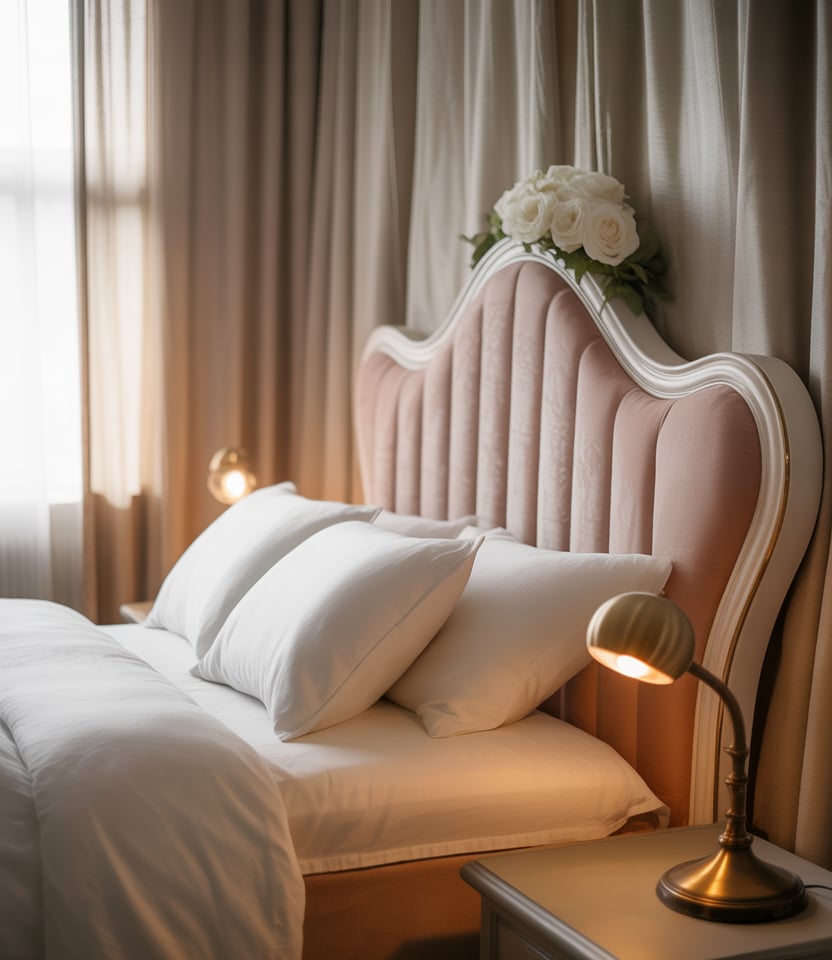 A wide, curved, or barrel headboard wraps around you like a gentle hug—perfect for couples date or for couples hotel style design. Upholster it in soft fabric to enhance comfort. At a boutique inn I slept against a curved headboard—it felt enveloping and romantic.
