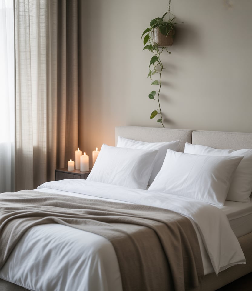 Combine minimalist décor with sculptural greenery and candles for clean romantic balance for Valentine’s Day room décor or couples’ love at home. Think single large fiddle leaf, one cluster of candlesticks. I attended a gallery-opening suite with this clean romantic layering—refreshing yet warm.