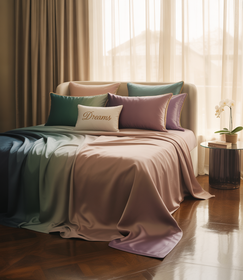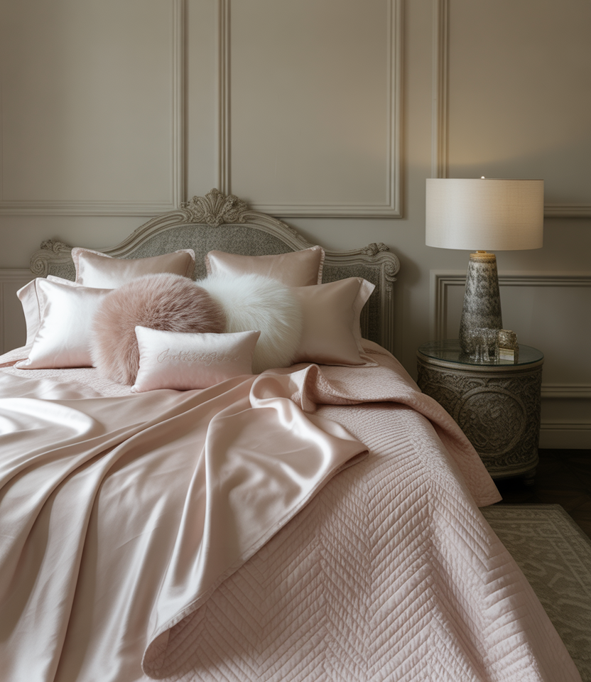 Swap cotton for satin or silk-blend sheets in deep charcoal, teal or blush for a sleek romantic touch for valentines day room decor or for couples date nights. The sheen catches candlelight. I once stayed in a suite where satin sheets felt buttery and indulgent.