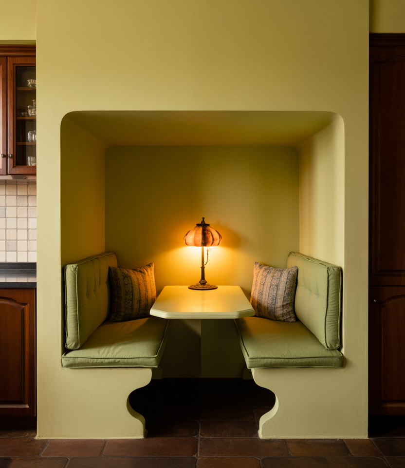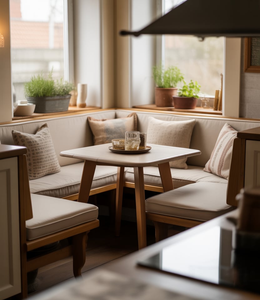If space permits, build a tiny banquette or bench seating into a nook or corner. This allows a table without requiring separate chairs eating up floor space. It’s smart in layout floor plans of studios or lofts, creating a cozy dining zone. Use the bench for hidden storage underneath as additional storage ideas.