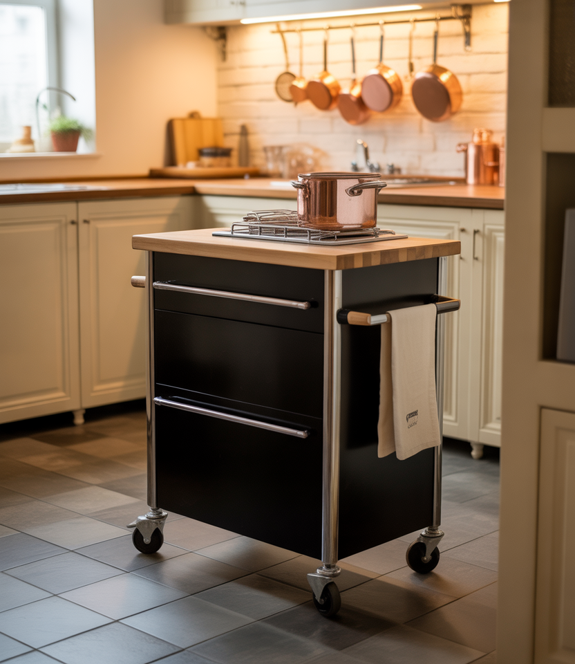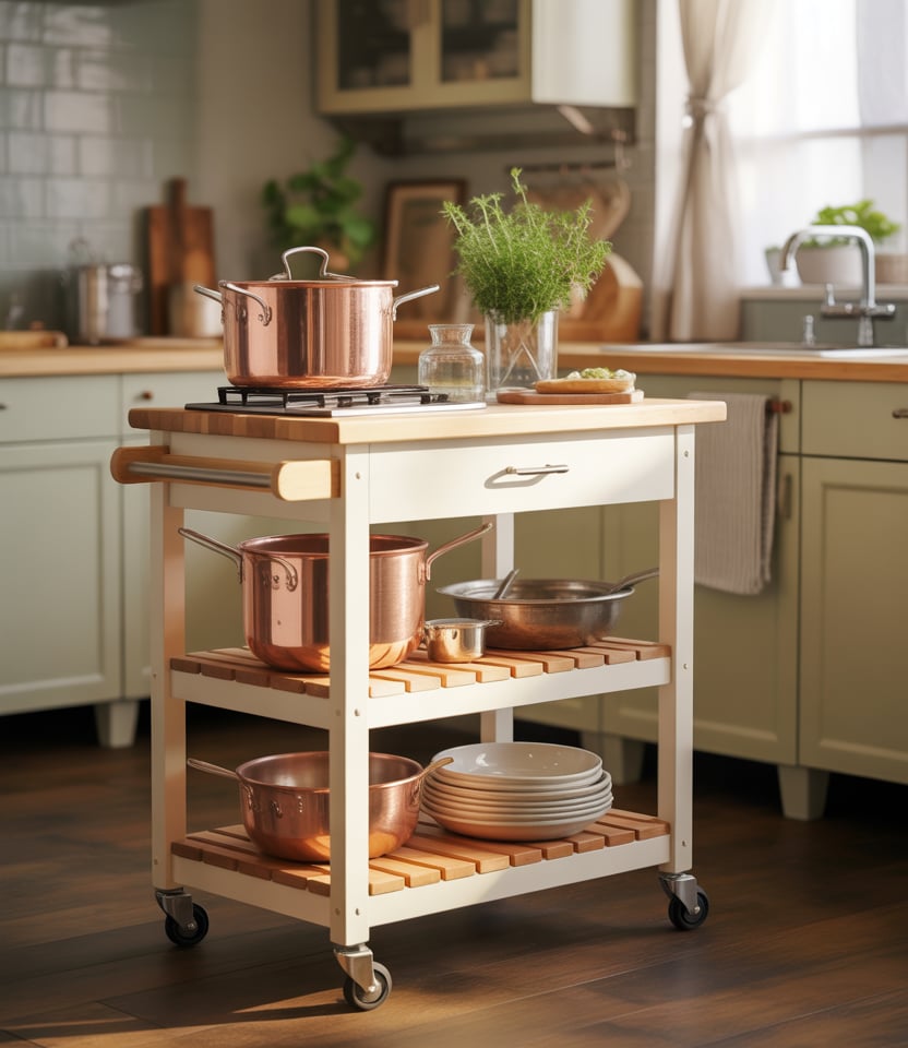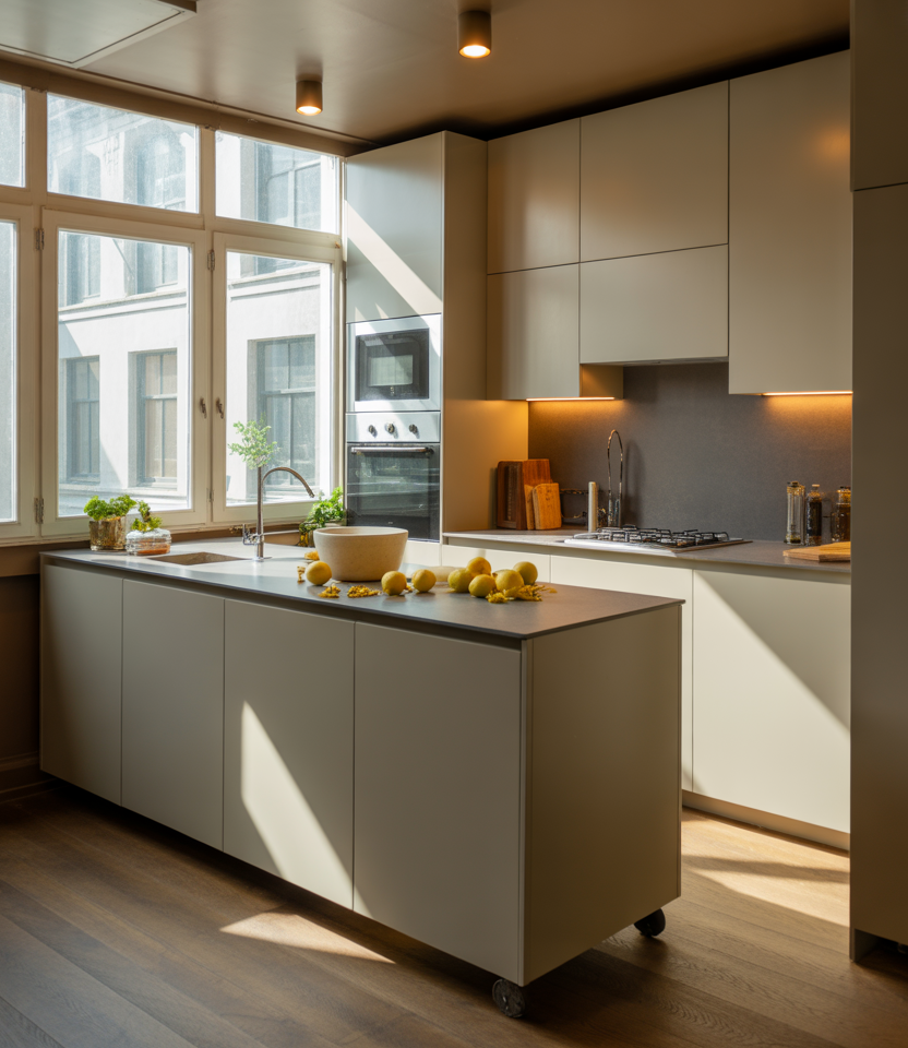 Design movable islands, carts, or prep surfaces on wheels (casters) that you can reposition as needed. In a layout constrained kitchen or apartments space saving ideas plan, these units bring flexibility. When not in use, tuck them aside. This is an accessible on a budget strategy to adapt your space.
