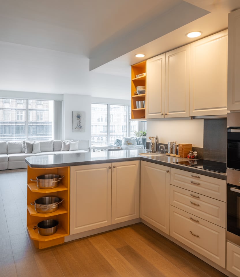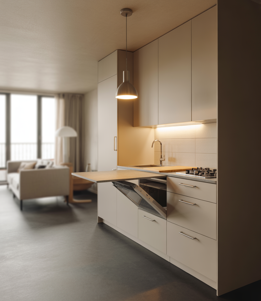 Choose narrower or under-counter versions of stoves, refrigerators, and dishwashers. Many brands now offer 24″ or 18″ wide appliances for compact kitchens. This aligns with design small apartments and apartments space saving goals. You preserve full function while freeing circulation space.