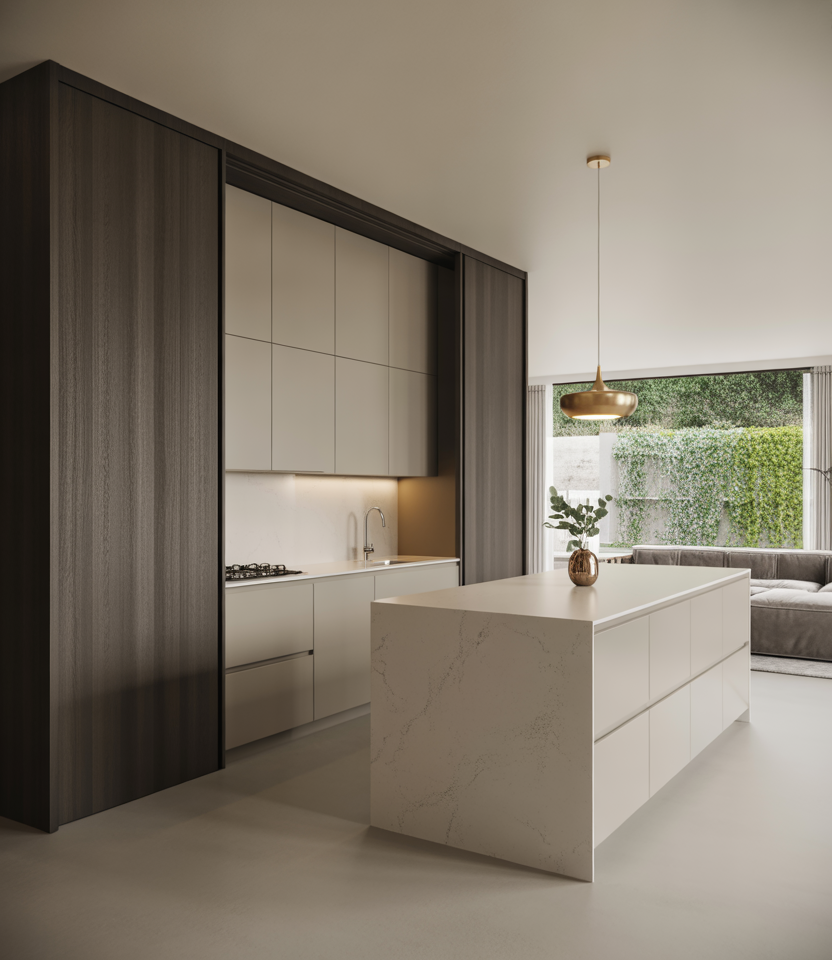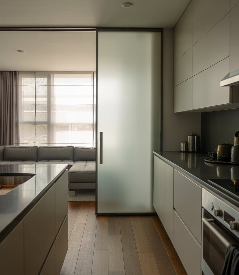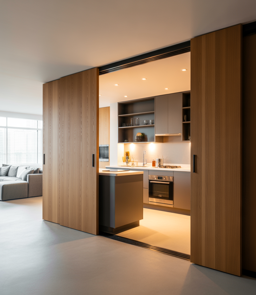 Use sliding or pocket doors rather than swinging ones to save clearance. A pocket door can tuck into a wall, freeing up floor layout for other uses. This is especially helpful when your kitchen is adjacent to a Living room combo or hallway. The move adds flow and is a clever Hacks detail in small renovation.