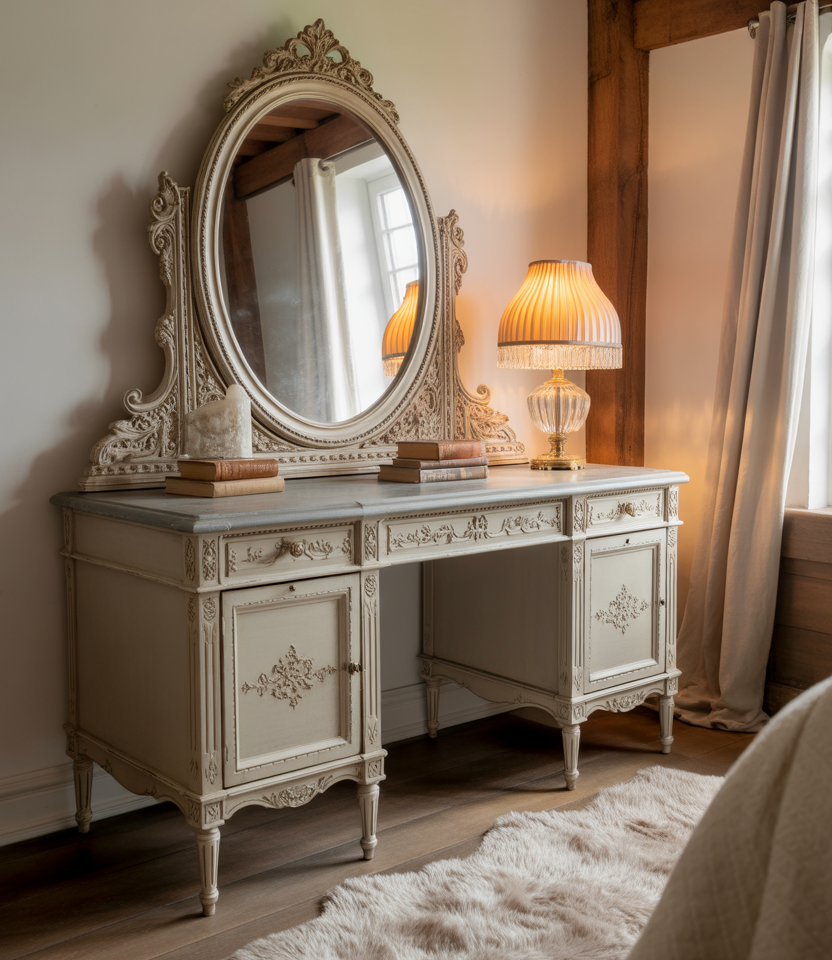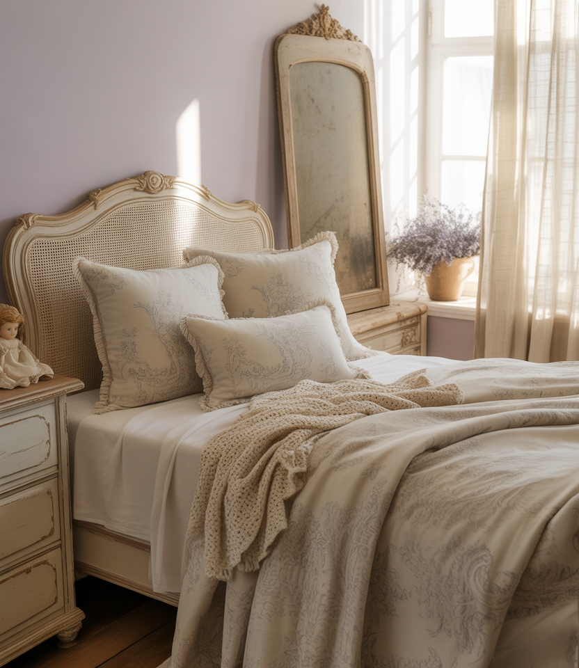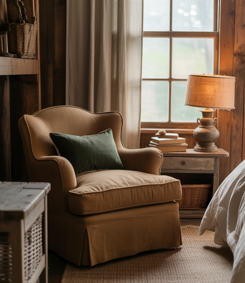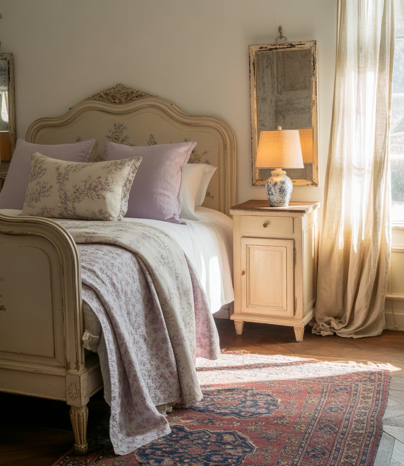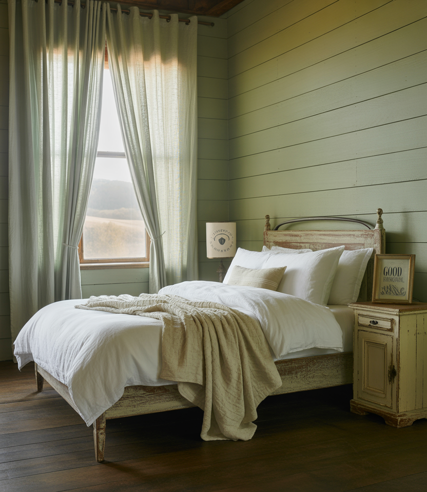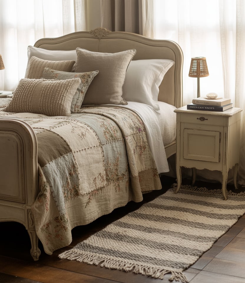 Celebrate Vintage farmhouse character with found pieces—antique dressers, salvaged mirrors, repurposed crates. This looks very personal and picturesque. I once rescued an old armoire and refinished it; in the bedroom, it was an instant conversation piece. Pair with soft paint colors like creamy white or pale gray, lace curtains, floral quilts, and subtle wall decor to finish the look.