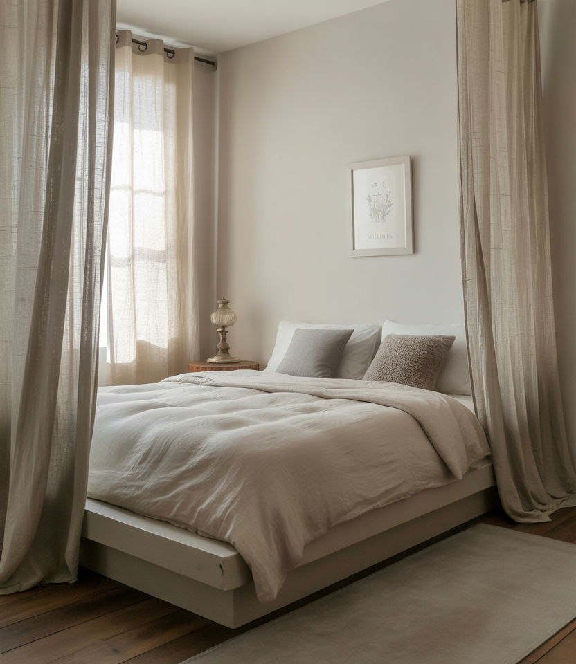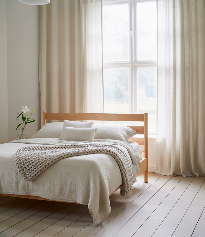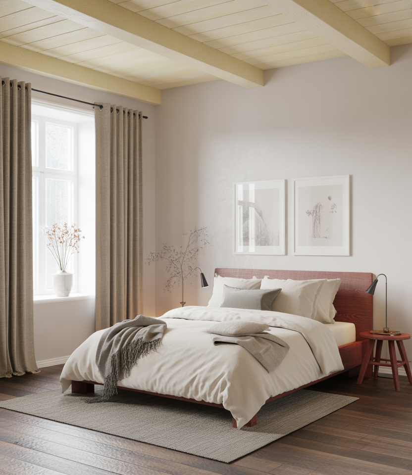 Combine Modern Scandinavian minimalism with cozy farmhouse touches: pale woods, clean lines, and cozy textiles. This decor idea works well for small rooms thanks to light tones and streamlined forms. I staged a cabin once with Scandinavian elements (simple nightstands, white bedding) and then added shiplap and barn doors for a touch of farmhouse spirit. Use curtains in light linen, simple furniture, and subtle wall decor.