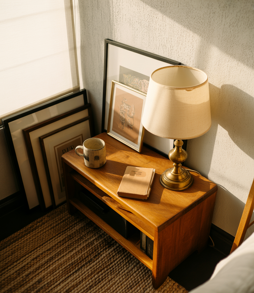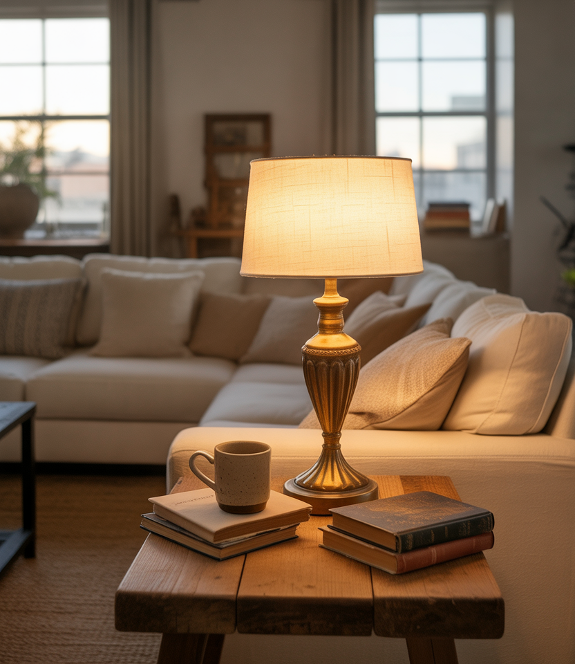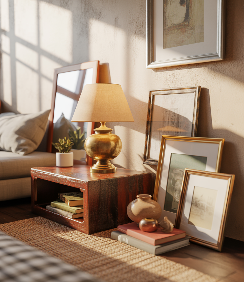 Lighting sourced from thrift store finds adds warmth and charm that new fixtures often lack. Vintage lamps bring character to modern apartments while remaining renter-safe. Even one unique light source can shift the mood of an entire room.