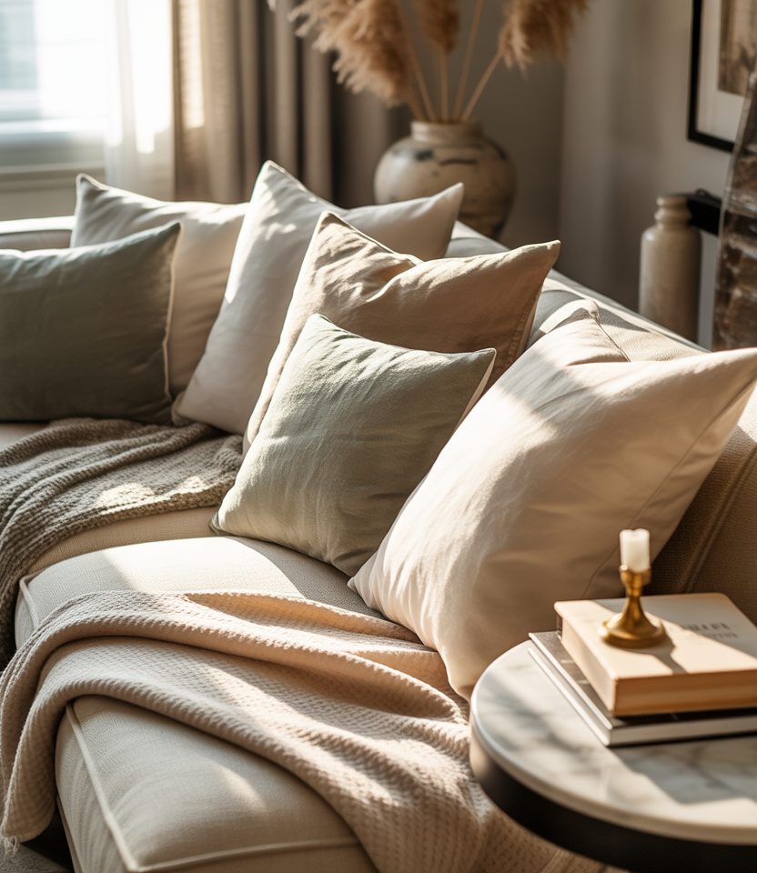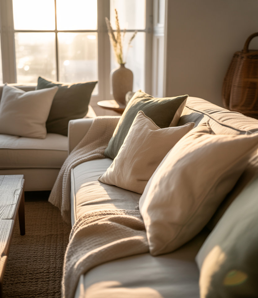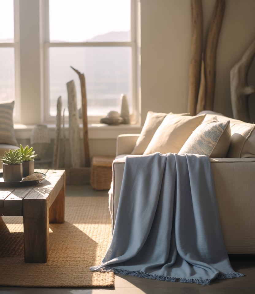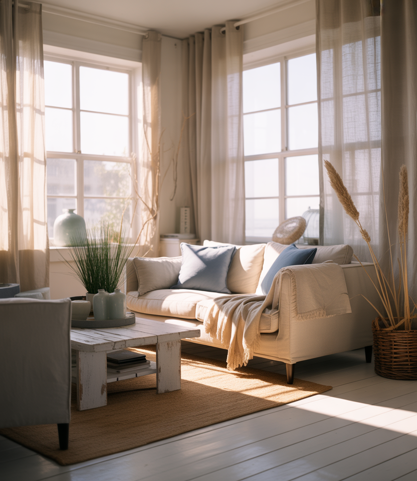 Soft linens and cottons inspired by coastal-inspired decor help apartments feel relaxed without heavy theming. In minimalist living room setups, these fabrics add texture while keeping the palette airy and understated.