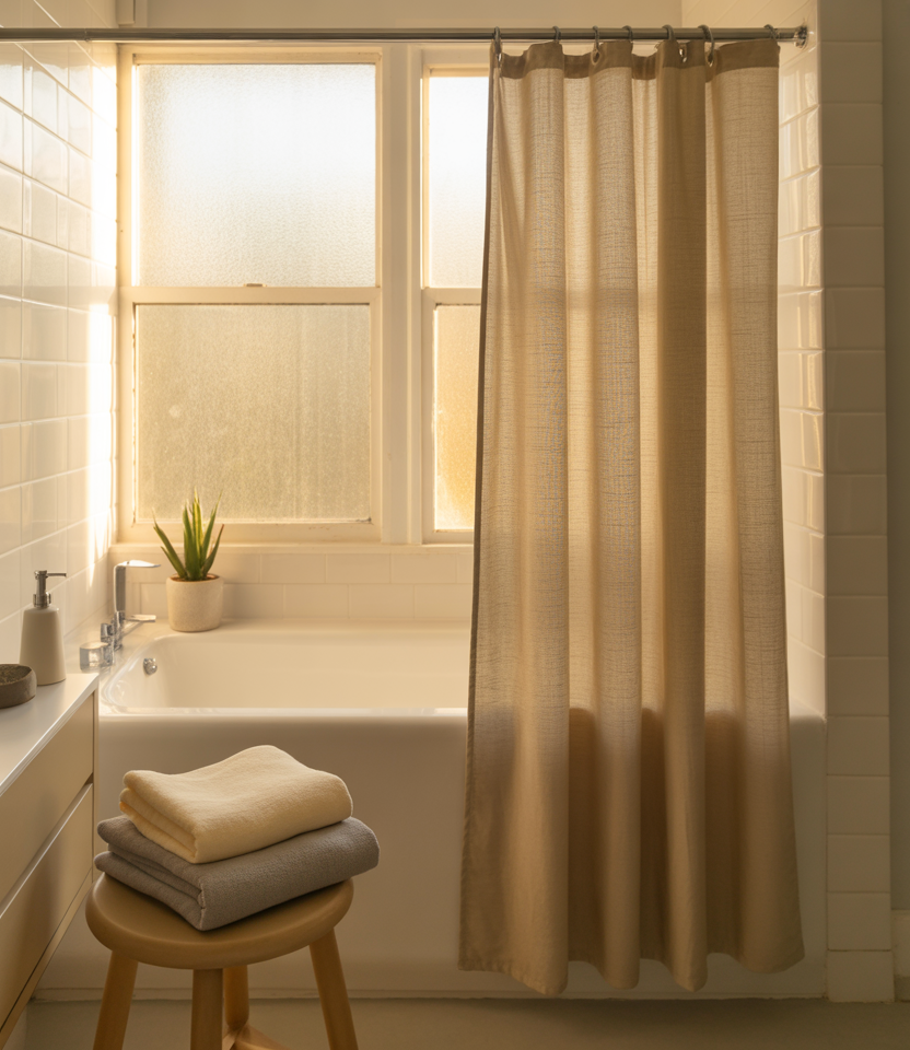 Updating a bathroom in a rental requires restraint, but small swaps go far. Coordinated towels, a fabric shower curtain, and simple accessories bring modern polish without touching fixtures. This approach keeps things flexible while still elevating a space that’s often overlooked in apartments.
