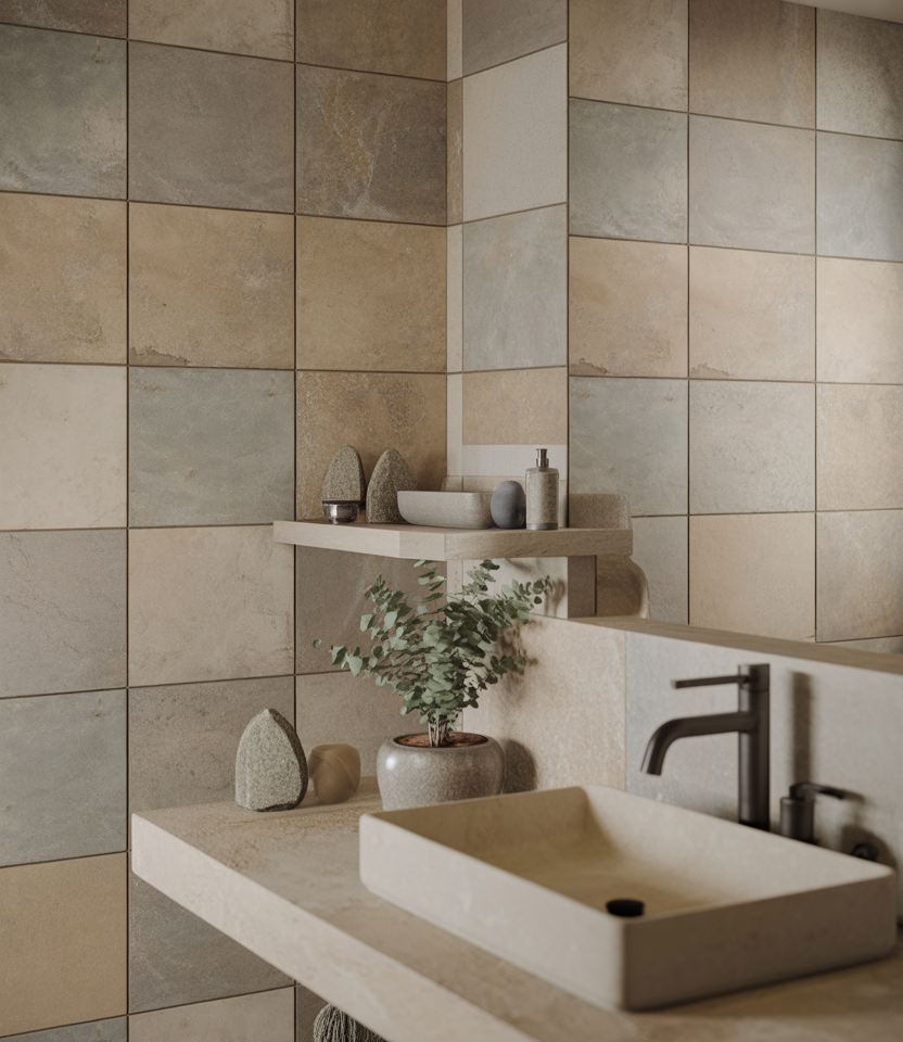 A refined stone aesthetic celebrates simple geometry and subtle color shifts in natural materials. Polished or honed surfaces in light gray or taupe set the scene. Incorporate threads of aesthetic minimalism, a hint of organic form, and a controlled dose of black edging to create visual definition without adding clutter. “Where it works best” is in bathrooms with limited ornamentation, where clean stone planes can shine. Homes with straightforward layouts—square rooms or uncomplicated plumbing walls—benefit most from the quiet sophistication that stone provides.”