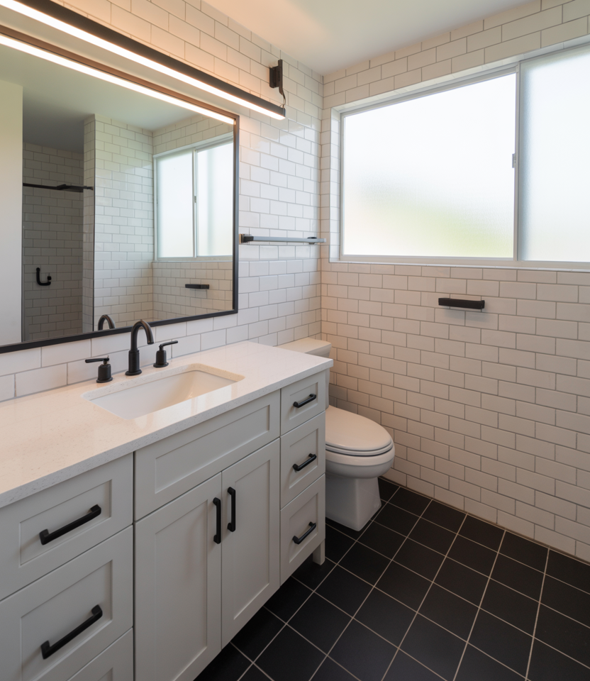 A smart-budget modern bathroom focuses on strong design decisions rather than high-cost materials. Think painted vanities, peel-and-stick backsplashes, or updated lighting. Gentle pops of budget creativity, hints of black accents, and a whisper of Chanel-style chic add polish without stretching your wallet. American lifestyle choices increasingly prioritize quick, achievable upgrades—especially for renters or first-time homeowners. Swapping knobs, adding a framed mirror, or updating a light fixture can entirely shift the bathroom’s personality in a single weekend.