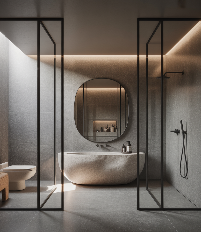 A refined stone aesthetic celebrates simple geometry and subtle color shifts in natural materials. Polished or honed surfaces in light gray or taupe set the scene. Incorporate threads of aesthetic minimalism, a hint of organic form, and a controlled dose of black edging to create visual definition without adding clutter. “Where it works best” is in bathrooms with limited ornamentation, where clean stone planes can shine. Homes with straightforward layouts—square rooms or uncomplicated plumbing walls—benefit most from the quiet sophistication that stone provides.”