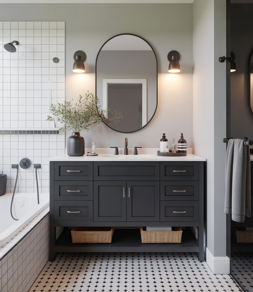 A smart-budget modern bathroom focuses on strong design decisions rather than high-cost materials. Think painted vanities, peel-and-stick backsplashes, or updated lighting. Gentle pops of budget creativity, hints of black accents, and a whisper of Chanel-style chic add polish without stretching your wallet. American lifestyle choices increasingly prioritize quick, achievable upgrades—especially for renters or first-time homeowners. Swapping knobs, adding a framed mirror, or updating a light fixture can entirely shift the bathroom’s personality in a single weekend.